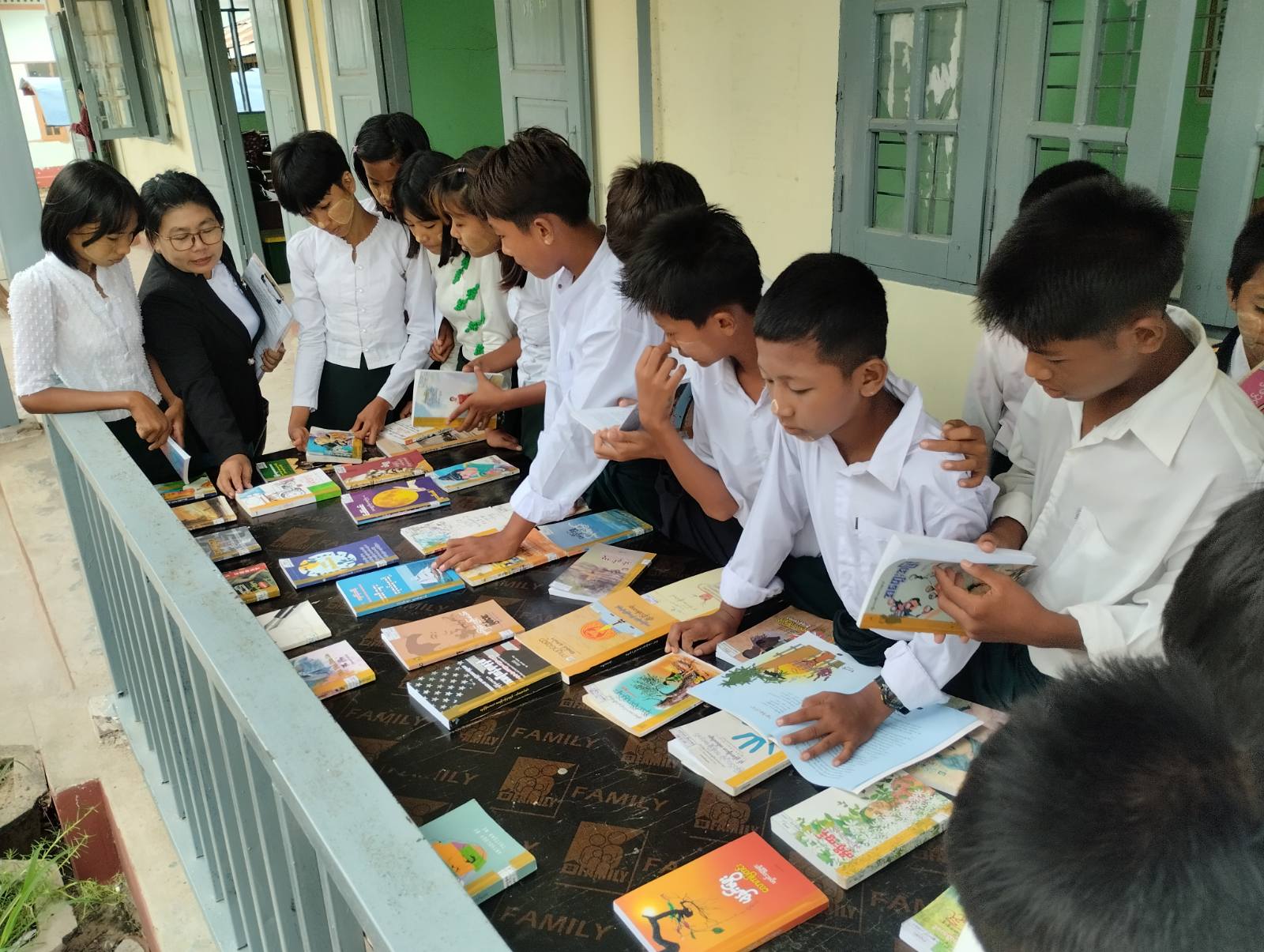 ထို့နောက် ပြန်ကြားရေးနှင့်ပြည်သူ့ဆက်ဆံရေးဦးစီးဌာနက ခင်းကျင်းပြသထားသည့် သုတ၊ ရသ စာအုပ်စာစောင်များ၊ မြို့နယ်တွင်း လှုပ်ရှားမှုမှတ်တမ်းဓာတ်ပုံများနှင့် မူးယစ်ဆေးဝါးအန္တရာယ်အသိပညာပေးနံရံကပ်စာစောင်များကို ပြသပေးခဲ့ရာ ကျောင်းသား၊ ကျောင်းသူများက စိတ်ပါဝင်စားစွာ ကြည့်ရှုခဲ့ကြကြောင်း သိရသည်။