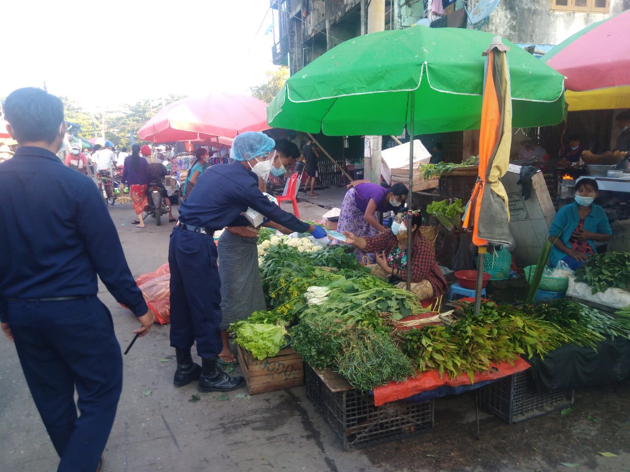နှာခေါင်းစည်း (Mask) များ အခမဲ့ဖြန့်ဝေခြင်းနှင့် ပတ်သက်၍ မြို့နယ်အရန်မီးသတ်တပ်ဖွဲ့ ဒုတပ်ရင်းမှူး ရီဝင်းက “ဈေးရောင်း၊ ဈေးဝယ် ပြည်သူတစ်ချို့က နှာခေါင်းစည်းမတပ်လာကြ ဘူး။ ဒါကိုကျွန်တော် တို့က နှာခေါင်းစည်း တပ်ဆင်ပြီး သွားလာကြဖို့ ရှင်းပြတယ် နှာခေါင်းစည်းတွေကိုလည်း အခမဲ့ပေးဝေ တယ် အခုလတ်တလောဖြစ်ပွားနေတဲ့ ကိုဗစ်-၁၉ ရောဂါကင်းဝေးအောင်းလို့ တတ်နိုင်တဲ့ ဘက်ကနေ တစ်ထောင့်တစ်နေရာက ဆောင်ရွက်ရတာ ပါ” ဟု ပြောကြားခဲ့သည်။