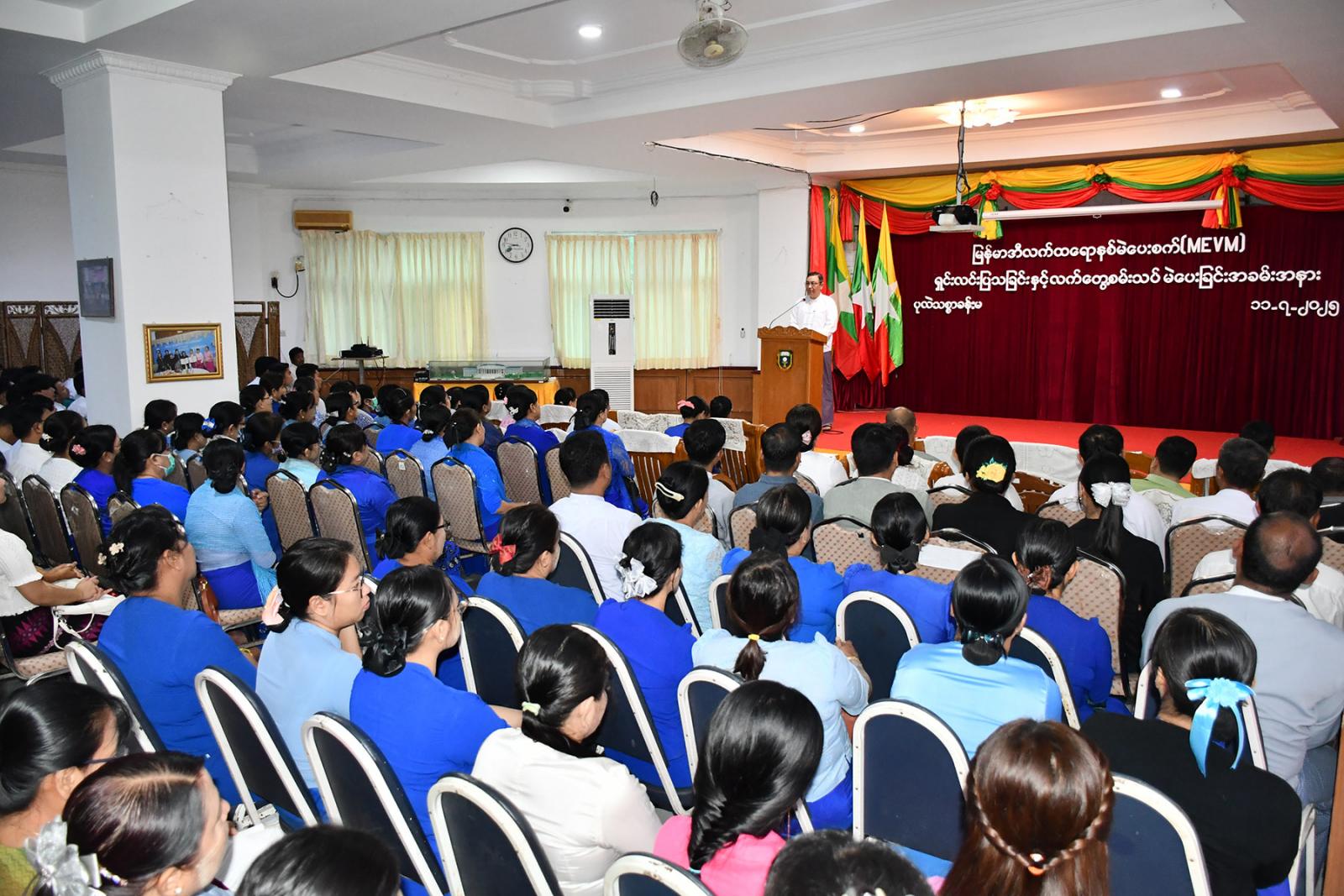 ထို့နောက် ပြည်ထောင်စုရွေးကောက်ပွဲကော်မရှင်ရုံးမှ ဒုတိယညွှန်ကြားရေးမှူးချုပ် ဦးညီညီလွင်က MEVM စက်အသုံးပြုရခြင်းနှင့် စပ်လျဉ်း၍ Power Point ဖြင့် ရှင်းလင်းပြော ကြားပြီး လုံခြုံရေးနှင့်နယ်စပ်ရေးရာ ဝန်ကြီးက အမှာစကားပြောကြားသည်။ ဆက်လက်၍ တက္ကသိုလ်ပါမောက္ခချုပ်၊ ဒုတိယပါမောက္ခချုပ်၊ ဆရာ၊ ဆရာမများ နှင့် ကျောင်းသား၊ ကျောင်းသူများက ရွေးကောက်ပွဲနေ့တွင် ဆောင်ရွက်ရမည့် အစီအစဉ်များအတိုင်း မြန်မာအီလက်ထရောနစ် မဲပေးစက်အသုံးပြု၍ လက်တွေ့စမ်းသပ်မဲပေးခြင်းကို လက်တွေ့သရုပ်ပြဆောင်ရွက်ခဲ့ကြသည်။