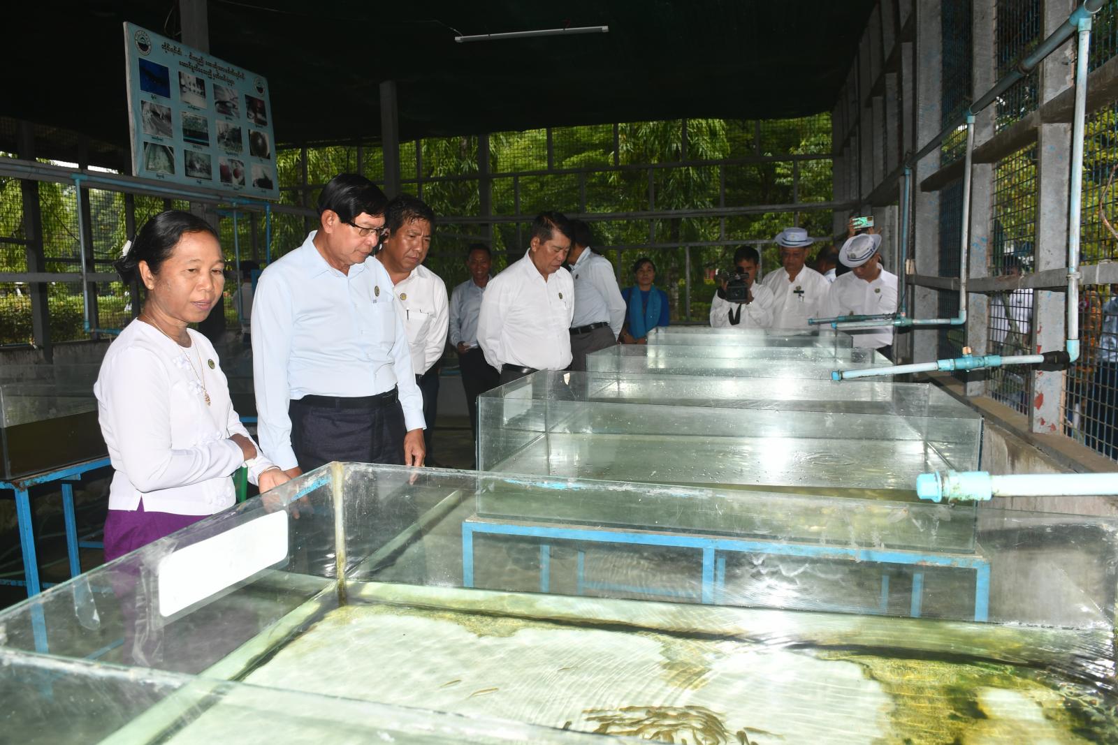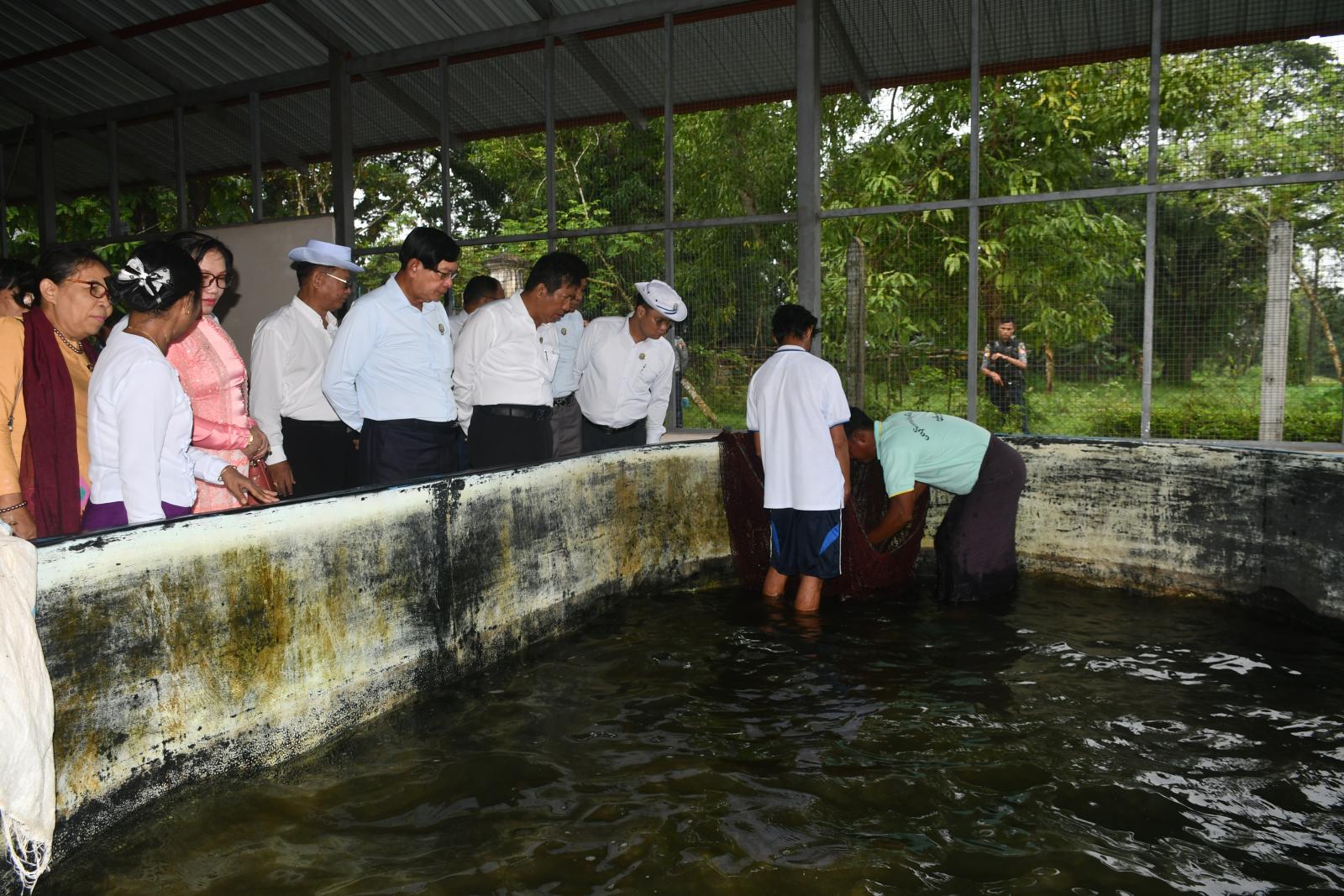ယင်းနောက် ရန်ကုန်တိုင်းဒေသကြီးအစိုးရအဖွဲ့ ဝန်ကြီးချုပ် ဦးစိုးသိန်းနှင့်အဖွဲ့က လှော်ကားငါးလုပ်ငန်းစခန်းအတွင်း တိုင်းရင်းငါးဖောက်ခန်း၊ ငါးသားပေါက်ခန်းနှင့် အလှမွေးငါးခန်းတို့အား လှည့်လည်ကြည့်ရှုစစ်ဆေးရာ တာဝန်ရှိသူများက လုပ်ငန်းဆောင်ရွက်နေမှု အခြေအနေများအား ရှင်းလင်းတင်ပြခဲ့ပြီး တိုင်းဒေသကြီးဝန်ကြီးချုပ်က လိုအပ်သည်များကို မှာကြားခဲ့သည်။ အဆိုပါသင်တန်းကို ဇူလိုင်လ(၁၁)ရက်နေ့မှ ဇူလိုင်လ(၁၃)ရက်နေ့အထိ စာတွေ့၊ လက်တွေ့သင်ကြားပို့ချသွားမည်ဖြစ်သည်။