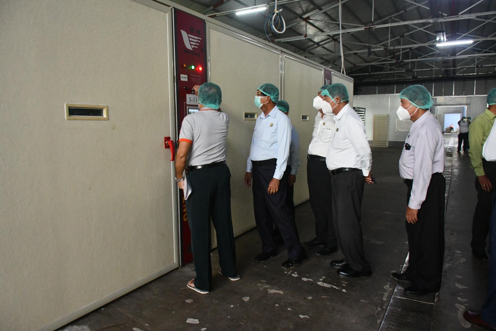 ၎င်းနောက် ရန်ကုန်တိုင်းဒေသကြီးအစိုးရအဖွဲ့ ဝန်ကြီးချုပ် ဦးစိုးသိန်းနှင့်အဖွဲ့သည် လှည်းကူးမြို့နယ်၊ ရဲမွန်ကျေးရွာအုပ်စု၊ Eastern Hatchery ကြက်သားပေါက်စက်ရုံတွင် ကြက်သားပေါက်ထုတ်လုပ်ရာတွင် လုပ်ငန်းများဖြစ်သည့် ကြက်ဥများထားရှိသည့် အအေးခန်း၊ အနွေးဓာတ်ခန်း၊ ကြက်သားပေါက်ခန်း၊ ကြက်သားပေါက်များ ပြန်လည်ရွေးချယ်နေသည်များနှင့် ကြက်သားပေါက်များ ထုတ်ပိုးမှု အဆင့်ဆင့်တို့ကို ကြည့်ရှုစစ်ဆေးခဲ့ပြီး ရှင်းလင်းဆောင်တွင် Eastern Hatchery ကြက်သားပေါက်စက်ရုံ၊ မန်နေဂျာမှ လုပ်ငန်းဆောင်ရွက်နေသည့် အခြေအနေများအား ရှင်းလင်းတင်ပြရာ တိုင်းဒေသကြီးဝန်ကြီးချုပ်က လိုအပ်သည်များကို မှာကြားခဲ့ကြောင်း သိရသည်။