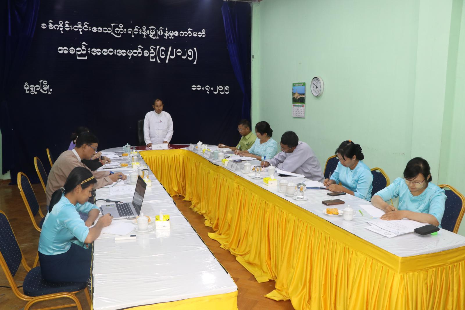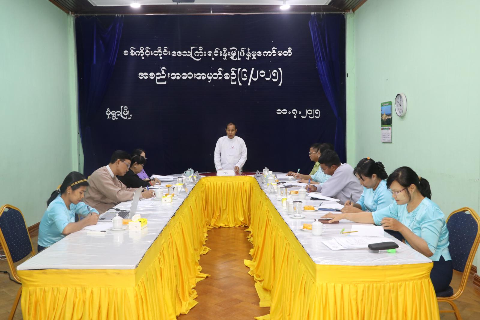 ယင်းနောက် တိုင်းဒေသကြီး ရင်းနှီးမြှုပ်နှံမှုကော်မတီ အတွင်းရေးမှူး၊ တိုင်းဒေသကြီး ရင်းနှီးမြှုပ်နှံမှုနှင့် ကုမ္ပဏီများ ညွှန်ကြားမှုဦးစီးဌာနမှ ညွှန်ကြားရေးမှူး ဒေါ်ဆင့်ဆင့်သန်းက ယခင်အစည်းအဝေးဆုံးဖြတ်ချက်များ၏ ဆောင်ရွက်ပြီးစီးမှုနှင့် ၂၀၂၅-ခုနှစ်၊ ဇွန်လအတွင်း စိစစ်ကြပ်မတ်ခဲ့သည့် ရင်းနှီးမြှုပ်နှံမှု လုပ်ငန်းအခြေအနေများနှင့် Power Point ဖြင့် ရှင်းလင်းတင်ပြသည်။