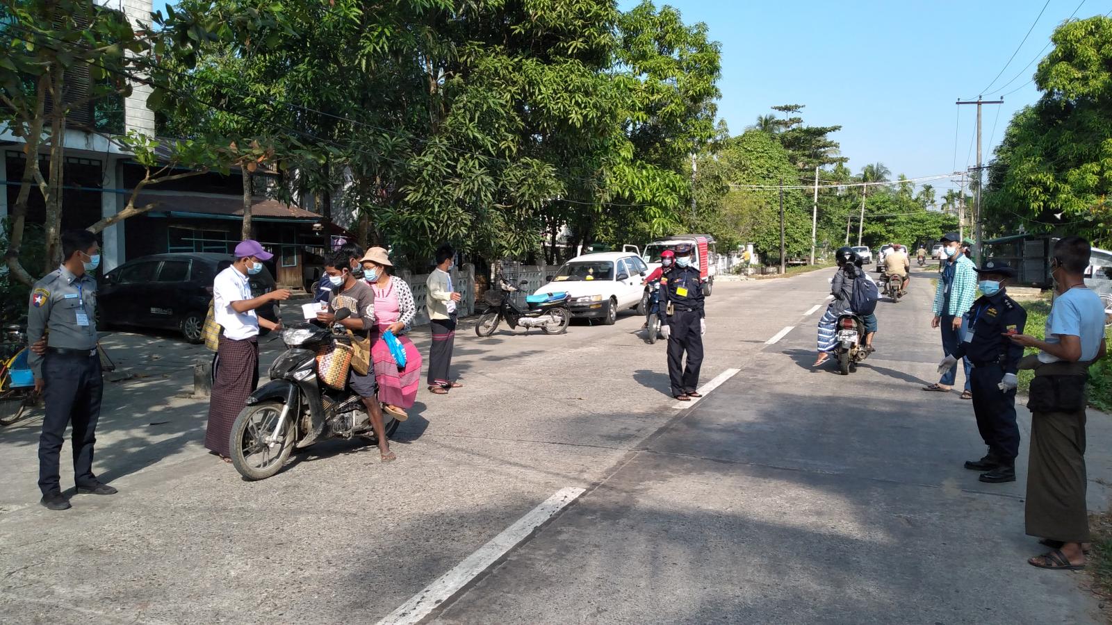 ထိုကဲ့သို့ စစ်ဆေးရာတွင် ယနေ့ နံနက်ပိုင်းတွင် အောင်သုခလမ်းနှင့် ရတနာလမ်းတို့တွင် နံနက်ပိုင်း Mobile Team အဖွဲ့ကကျေးရွာများမှ ခရီးသွားပြည်သူများကို အုပ်ချုပ်ရေးမှူး ထောက်ခံစာ၊ မြို့ပေါ်ရပ်ကွက်များမှ နေအိမ်ပြင်ပထွက်ခွာသူများကို သတ်မှတ်ခွင့်ပြု ကဒ်ပြားများဖြင့် သွားလာခြင်း ရှိ/မရှိကို စစ်ဆေးကြသည်။