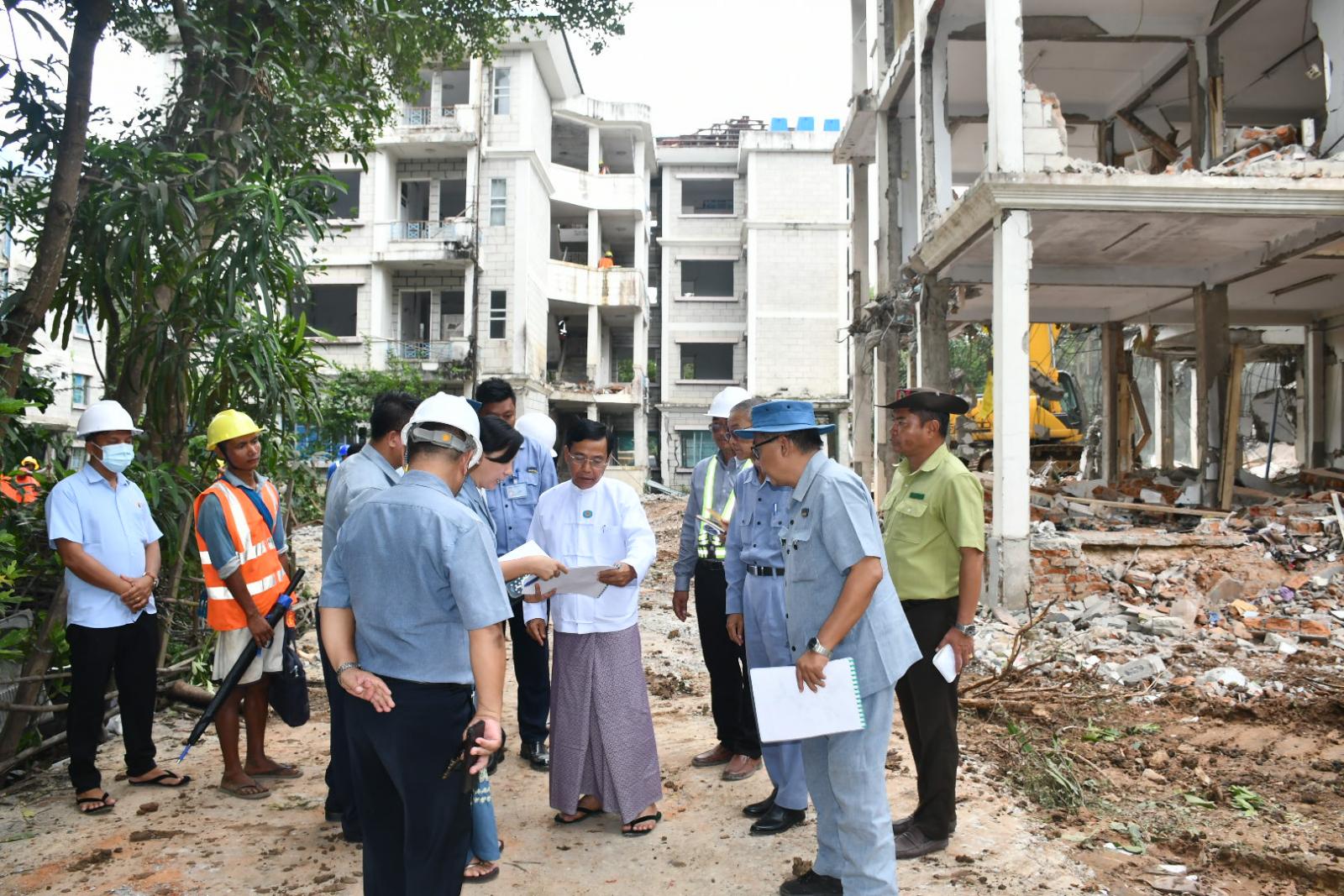 ယင်းနောက် ငလျင်ဘေးကြောင့် ထိခိုက်ပျက်စီးခဲ့သည့် ခရေအိမ်ရာ တိုက်အမှတ် ၉၆ အား ပြန်လည်ပြုပြင်နေမှုကို လှည့်လည်ကြည့်ရှုစစ်ဆေးပြီး တာဝန်ရှိသူများအား လုပ်ငန်းများ အပိုင်းလိုက်၊ အခန်းလိုက် အမြန်ပြီးစီးအောင် ဆောင်ရွက်ရေး၊ ရေရှည်ခိုင်ခံ့မှုရှိအောင် စံချိန်စံညွှန်း နှင့်အညီ ဆောင်ရွက်ရေး၊ လုပ်သားအင်အား တိုးမြှင့်ဆောင်ရွက်ရေးတို့ကို မှာကြားခဲ့သည်။