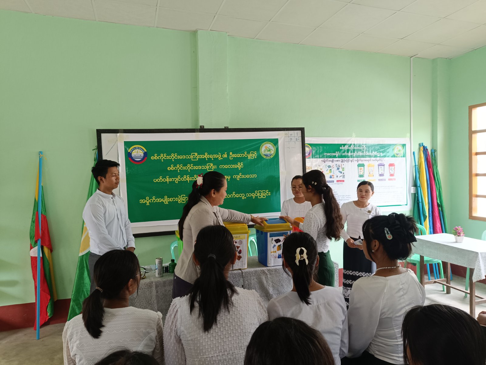 စစ်ကိုင်းတိုင်းဒေသကြီး၊ ကလေးခရိုင်၊ ကလေးမြို့၊ အခြေခံပညာအထက်တန်းကျောင်း၊ အမှတ် (၈) ကျောင်းတွင် ယနေ့နံနက်ပိုင်းက ပတ်ဝန်းကျင်ထိန်းသိမ်းရေးဦးစီးဌာနမှ တာဝန်ရှိသူများက အမျိုးသမီးနှင့် ပတ်ဝန်းကျင်ခေါင်းစဉ်ဖြင့် အသိပညာပေးဟောပြောပွဲ ကျင်းပခဲ့ကြောင်း သိရသည်။