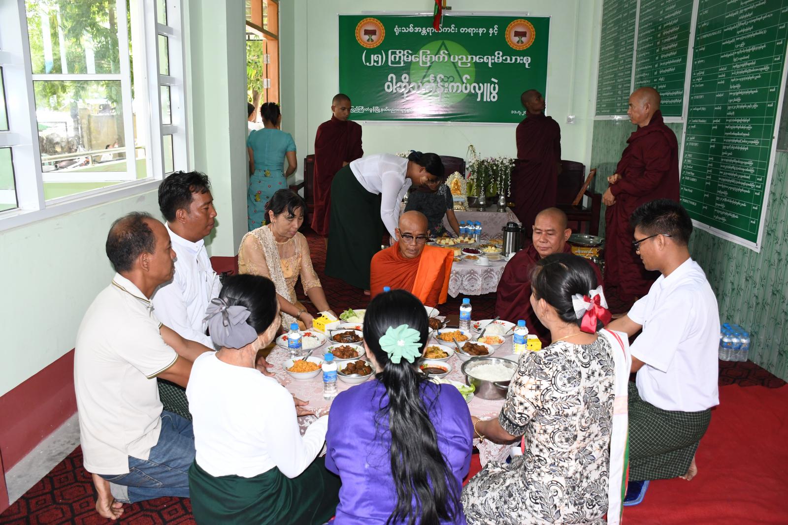 ယင်းနောက် မြို့နယ်ပညာရေးမှူးနှင့်ဝန်ထမ်းမိသားစုဝင်များက ဆရာတော် အဂ္ဂမဟာသဒ္ဓမ္ဓဇောတိကဓဇတိုင်း သံယနာယကဥက္ကဋ္ဌ ဒေါက်တာဘဒ္ဒန္တသုစိဏ္ဏာ လင်္ကာရကနှင့် သံဃာတော်ဘုန်းကြီး (၄)ပါးတို့အား နေ့ဆွမ်းကပ်လှူခဲ့သည်။ အဆိုပါ ဝါဆိုသင်္ကန်းဆပ်ကပ်လှူပွဲကို မြို့နယ်ပညာရေးမှူးနှင့် ဝန်ထမ်းမိသားစုဝင်များ၊ ကျောင်းဆရာ/မများနှင့် ဖိတ်ကြားထားသော သက်ဆိုင်ရာဌာနဆိုင်ရာများ တက်ရောက်ခဲ့ကြောင်း သိရသည်။