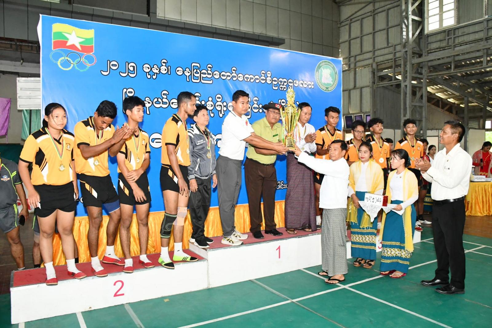 ဆက်လက်၍ ဆုပေးပွဲအခမ်းအနားကိုကျင်းပရာ ပြိုင်ပွဲတွင် တတိယဆု၊ ဒုတိယဆုနှင့် ပထမဆုရရှိသော မြို့နယ်အသင်းများအား တစ်ဦးချင်းဆုတံဆိပ်နှင့် ငွေသားဆုများကို နေပြည်တော်ကောင်စီဝင်များက ပေးအပ်ချီးမြှင့်ကြပြီး ပထမဆုရရှိသော ပျဉ်းမနားမြို့နယ်အသင်းအား တံခွန်စိုက်ဆုဖလားကြီးနှင့် ငွေသားဆုအား နေပြည်တော်ကောင်စီဥက္ကဋ္ဌ ဦးသန်းထွန်းဦးမှ ပေးအပ်ချီးမြှင့်ခဲ့သည်။
