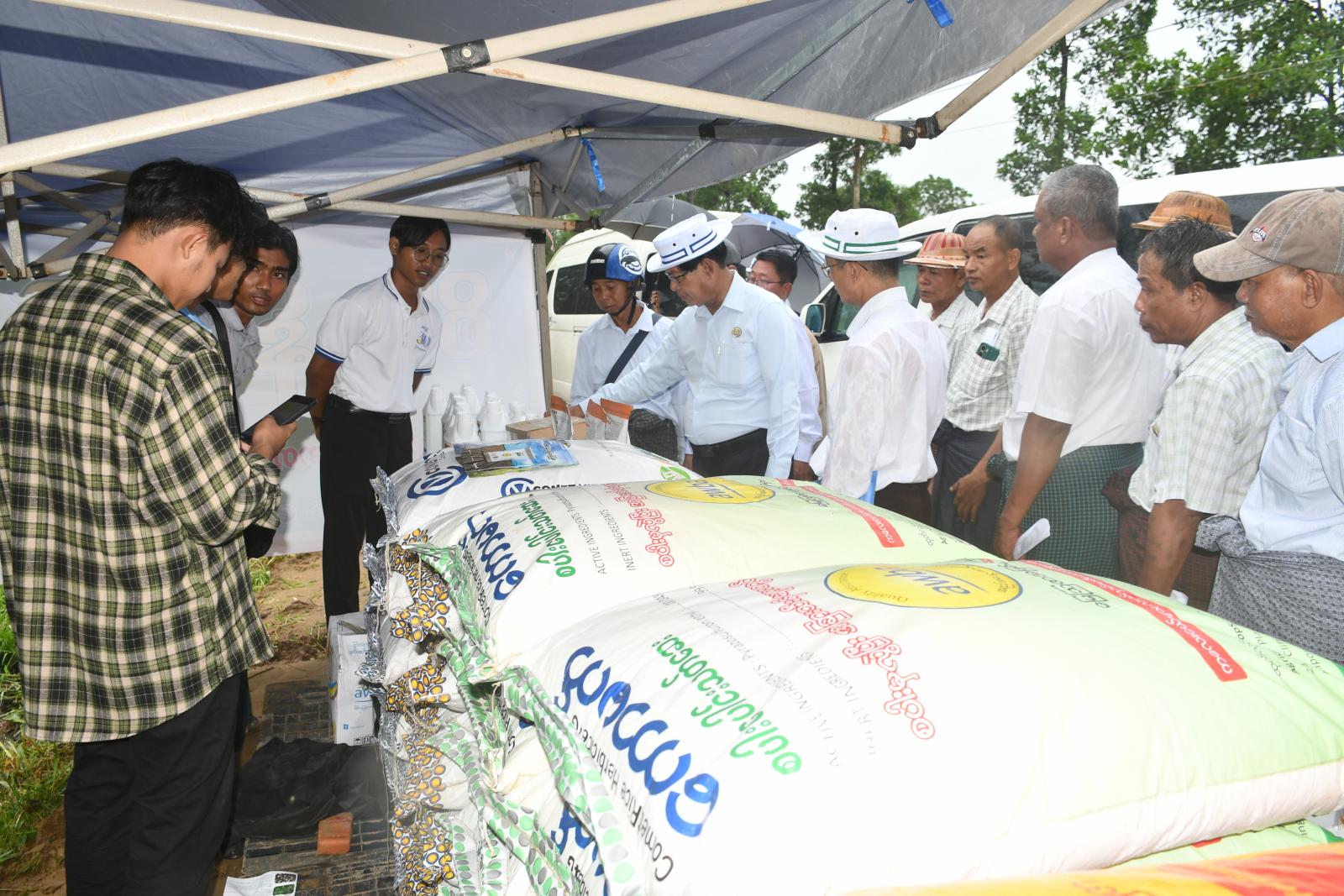 ၂၀၂၅ ခုနှစ်၊ မိုးစပါးစိုက်ပျိုးမှု သရုပ်ပြခြင်း၊ ဓာတ်မြေဩဇာ ပေးအပ်ခြင်းနှင့် စိုက်ပျိုးစရိတ်ချေးငွေ ပေးအပ်ခြင်းတို့ကို ဇူလိုင်လ (၁၁) ရက်နေ့ နံနက်ပိုင်းက ရန်ကုန်တိုင်းဒေသကြီး၊ လှည်းကူးခရိုင်၊ လှည်းကူးမြို့နယ်၊ သနပ်ပြင်ကျေးရွာအုပ်စု၊ တောင်သူ ဦးအောင်လွင်၏ စံပြစိုက်ကွက်တွင် ဆောင်ရွက်ကြသည်။