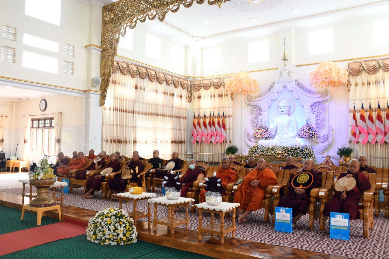 ရှေးဦးစွာ နမောတဿ ( ၃) ကြိမ် ရွတ်ဆိုဘုရားကန်တော့၍ အခမ်းအနားကို စတင်ဖွင့်လှစ်ပြီး နိုင်ငံတော် ဗဟိုသံဃာ့ဝန်ဆောင် ဆရာတော် ဘဒ္ဒန္တအာစိဏ္ဏ အဂ္ဂမဟာသဒ္ဓမ္မဇောတိကဓဇထံမှ (၅) ပါးသီလခံယူဆောက်တည်၍ သံဃာတော်အရှင်သူမြတ်တို့ထံမှ ပရိတ်တရားတော်များ နာယူကြည်ညိုကြပြီး တာဝန်ရှိသူများနှင့် အလှူရှင်များက ဆရာတော်ကြီးများနှင့် သံဃာတော်အပါး (၁၆၉) ပါးတို့အား ဝါဆိုသင်္ကန်းများ အသီးသီးဆက်ကပ်လှူဒါန်းခဲ့ကြသည်။