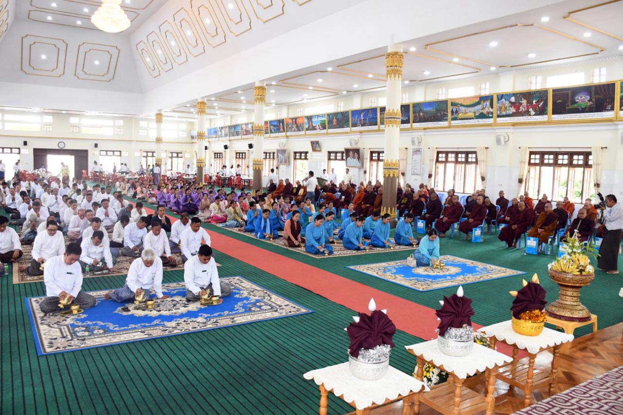 ဆက်လက်ပြီး ပြင်ဦးလွင်မြို့ သံဃာတော်များကိုယ်စား မြို့နယ်သံဃနာယကအဖွဲ့ဥက္ကဋ္ဌ ဆရာတော် ဘဒ္ဒန္တကေသရ မဟာဂန္ထဝါစကပဏ္ဍိတထံမှ အနုမောဒနာ ရေစက်ချတရားနာယူကြည်ညိုကြပြီး၊ ပရိတ်သတ်များက ဩကာသကန်တော့ချိုးဖြင့် ပြန်လည်ကန်တော့၍ ဗုဒ္ဓသာသနံစိရံတိဌတု (၃) ကြိမ် ရွတ်ဆိုဆုတောင်းကာ အခမ်းအနားကို ရုတ်သိမ်းခဲ့ပြီးနောက် ဆရာတော်သံဃာတော်များအား နေ့ဆွမ်းဆက်ကပ်လှူဒါန်းခဲ့ကြကြောင်း သိရှိရသည်။