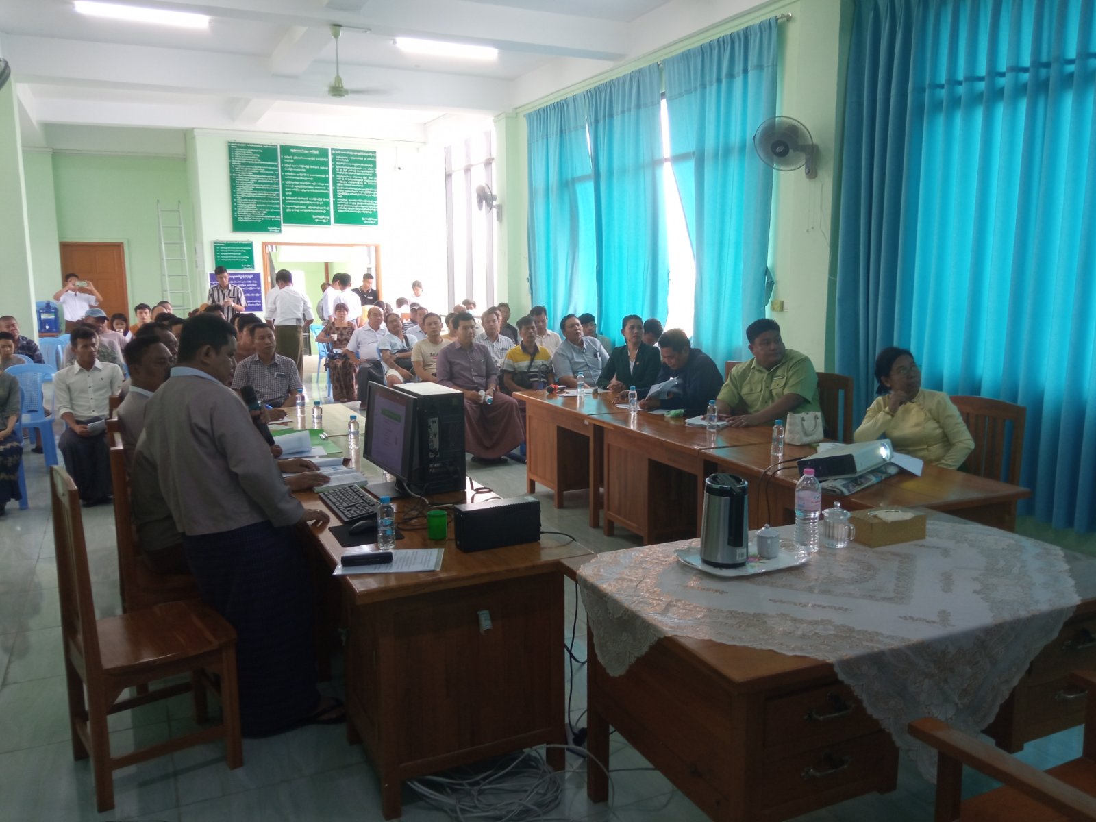 ဦးစွာ မြို့နယ်စီမံအုပ်ချုပ်ရေးအဖွဲ့ဥက္ကဋ္ဌက အဖွင့်အမှာစကားပြောကြားပြီး၊ မြို့နယ်အခွန်ဦးစီးဌာနမှူး ဦးဝင်းနိုင်က အခွန်ဆိုင်ရာသိမှတ်ဖွယ်ရာများကို (Power Point) ဖြင့် ရှင်းလင်းတင်ပြသည်။