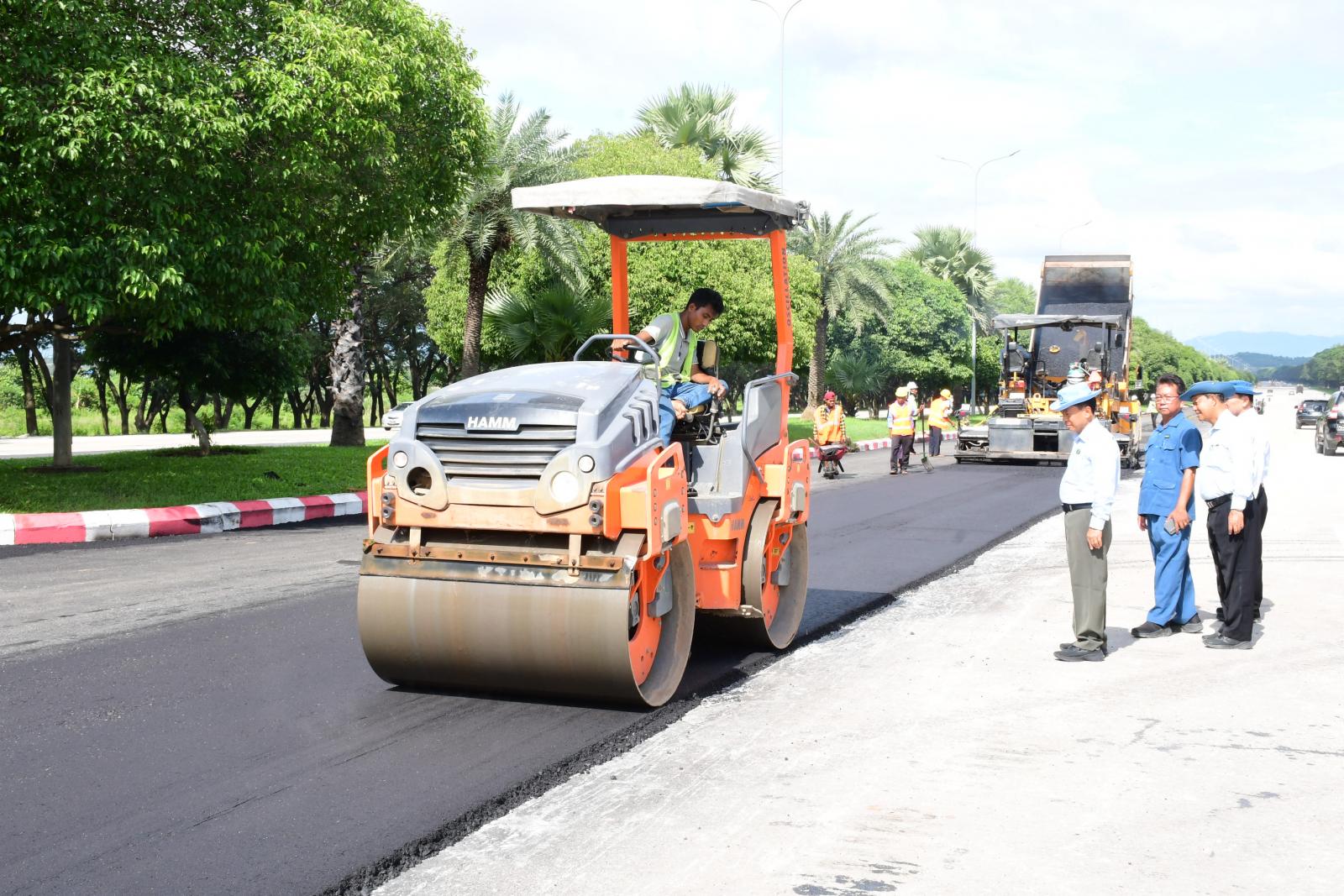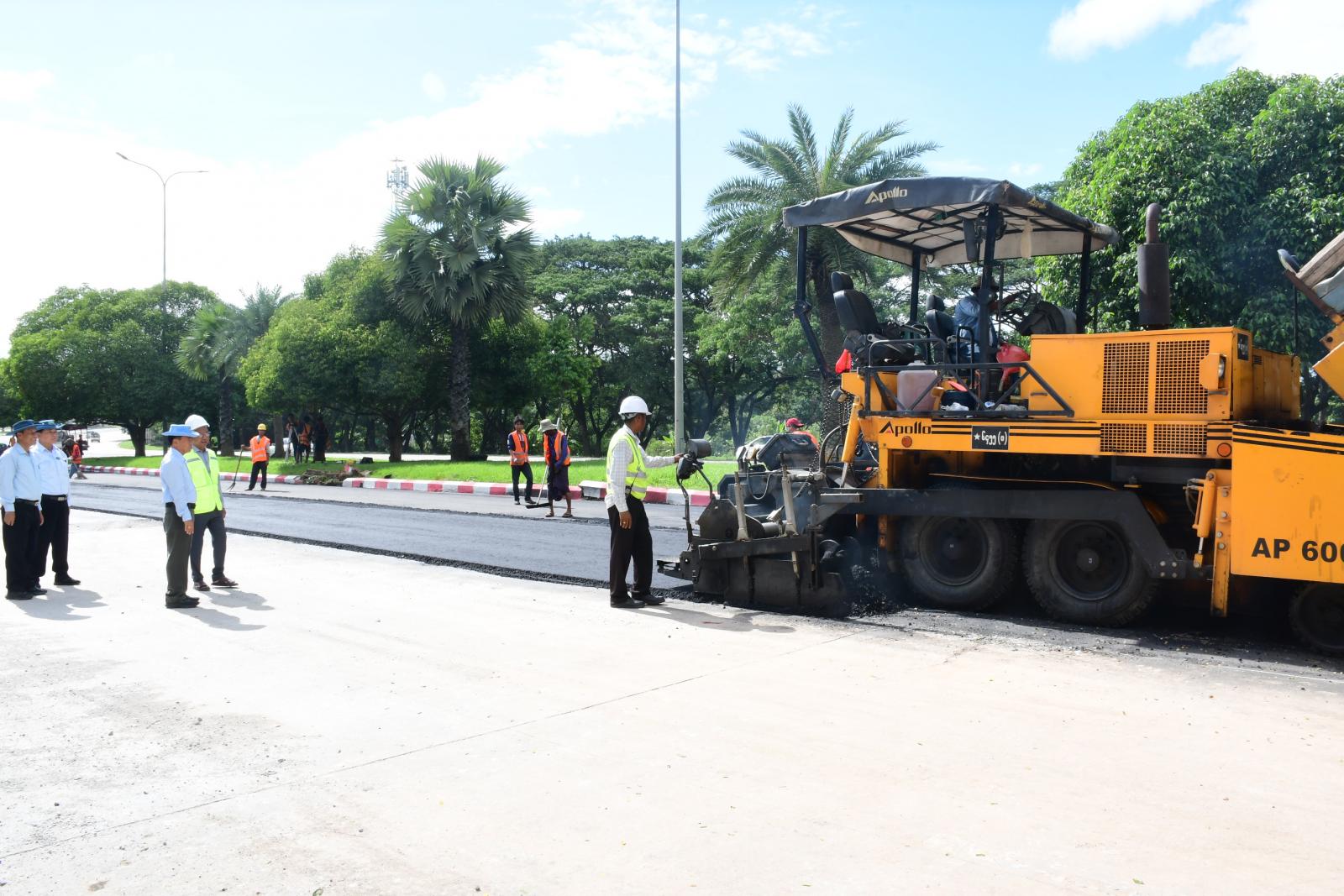 ယင်းနောက် ရာဇသင်္ဂဟလမ်းနှင့် ရာဇဌာနီလမ်းများသို့သွားရောက်ပြီး ငလျင်ဘေးကြောင့်ထိခိုက်ပျက်စီးခဲ့သော လမ်းပိုင်းများပြန်လည်ပြုပြင်နေမှုနှင့် နိုင်လွန်ကတ္တရာလမ်း(AC) ခင်းကျင်းနေမှုများကို လှည့်လည်ကြည့်ရှုစစ်ဆေးခဲ့ကြောင်း သိရသည်။