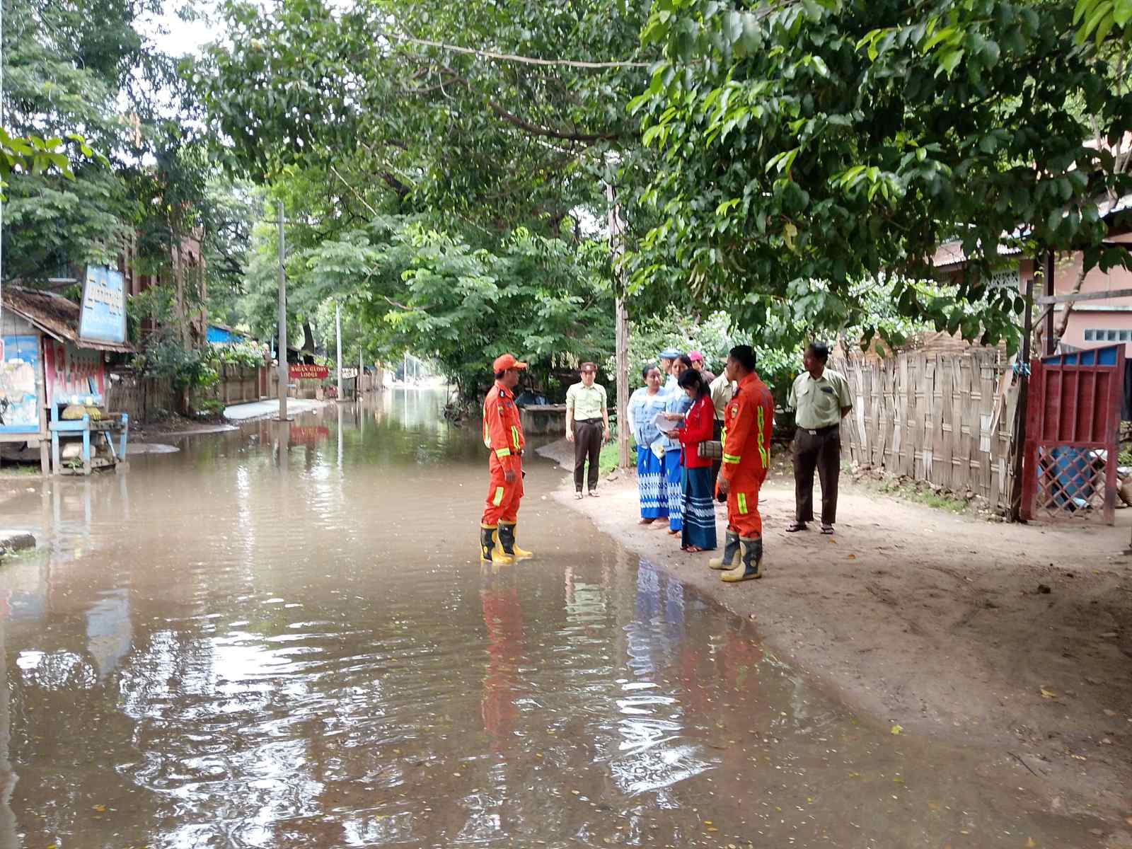 ညောင်ဦးမြို့နယ်တွင် ဧရာဝတီမြစ် စိုးရိမ်ရေမှတ်သို့ရောက်ရှိရန်တဖြည်းဖြည်း နီးကပ်လာနေပြီဖြစ်ရာ မြစ်ကမ်းဘေးနေအိမ်များနှင့် မြေနိမ့်ပိုင်းရပ်ကွက်များတွင် မြစ်ရေဝင်ရောက်မည့် မြေနိမ့်ပိုင်းရပ်ကွက်များသို့ ညောင်ဦးမြို့နယ်စီမံအုပ်ချုပ်ရေးအဖွဲ့ဥက္ကဋ္ဌ ဦးဝင်းလှိုင်တင့်၊ မြို့နယ်စည်ပင်သာယာရေးအဖွဲ့၊ အမှုဆောင်အရာရှိ ဦးခင်မောင်ခနှင့်တာဝန်ရှိသူများမှ ယာယီရေဘေးရှောင်စခန်းများ ဖွင့်လှစ်ပေးထားလျက်ရှိကြောင်း၊ အဆိုပါ ယာယီရေးဘေးရှောင်စခန်းများ ဖွင့်လှစ်ထားရှိသည့် အမှတ်(၁)ရုံးညောင်ပင်ရပ်၊ အမှတ်(၂)ရပ်၊ ယွန်းတန်းဓမ္မာရုံ၊ အမှတ်(၄)ရပ်ကွက်၊ ဆင်ဆယ်မေဓမ္မာရုံတို့တွင် ယာယီရေဘေးရှောင် စခန်းဖွင့်လှစ်ထားရှိမှုနှင့် ရေဘေးကြောင့် ယာယီပြောင်းရွှေ့ကြမည့် မြေနိမ့်ပိုင်းရပ်ကွက်များရှိ ရေဘေးရှောင်ပြည်သူများ အဆင်ပြေချောမွေ့စေရေးတို့အတွက် လိုက်လံကြည့်ရှုစစ်ဆေးခြင်းနှင့် ရေဝင်ရောက်သည့် မြေနိမ့်ပိုင်းရပ်ကွက်များအား ကြည့်ရှုစစ်ဆေးခဲ့ပြီး သဘာဝဘေးအန္တရာယ်ဖြစ်ပေါ်လာပါက အချိန်နှင့်တစ်ပြေးညီဆောင်ရွက်နိုင်ရေး ကြိုတင်ပြင်ဆင်ထားရှိသည့် ညောင်ဦးမြို့နယ်မီးသတ်ဦးစီးဌာနမှ မီးသတ်ဝန်းထမ်းများက ကူညီပြောင်းရွှေ့နေမှုများအား ကြည့်ရှုစစ်ဆေးခဲ့ကြောင်း သိရသည်။