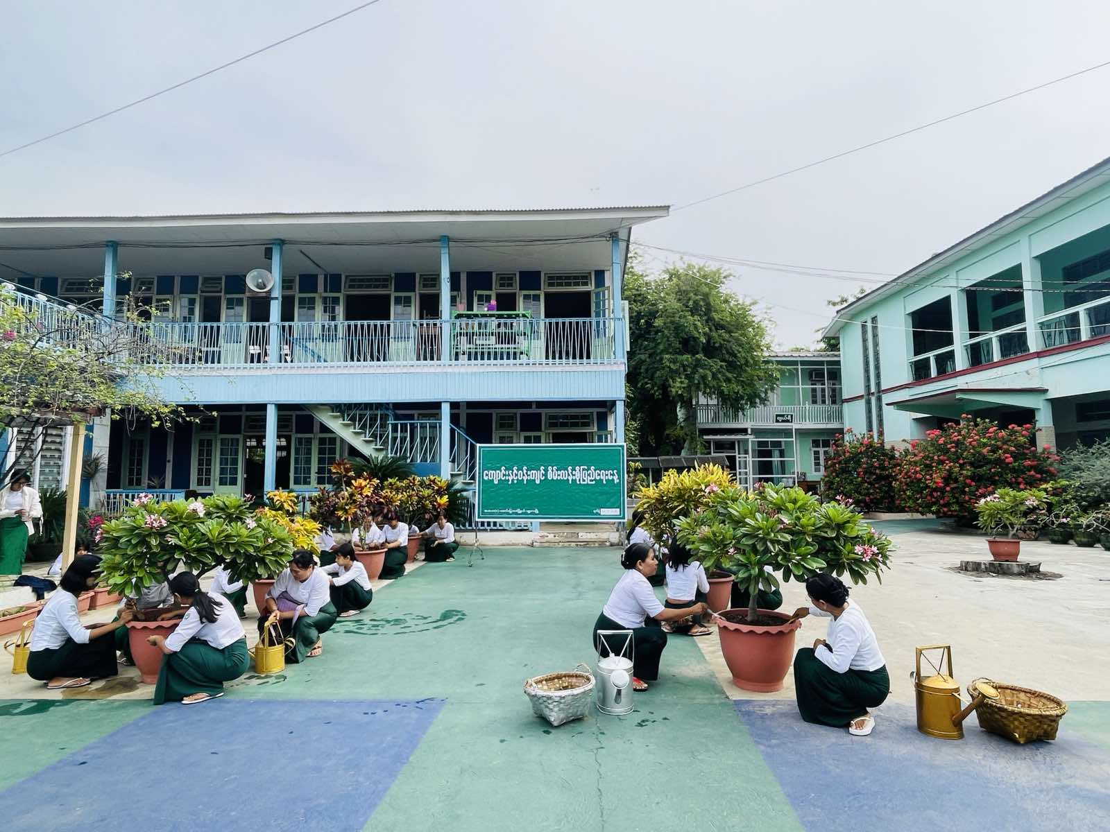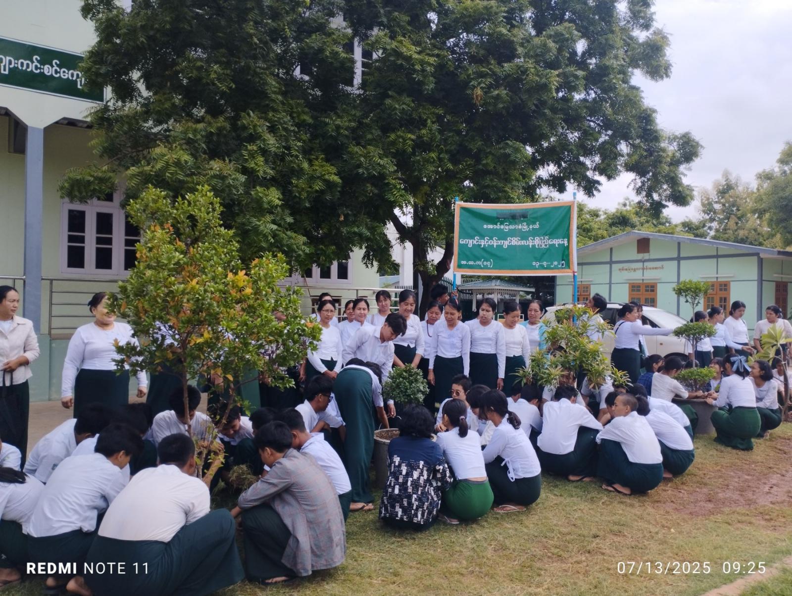 အဆိုပါအခမ်းအနားတွင် ကျောင်းအုပ်ဆရာမကြီး ဒေါ်ခင်ဌေးဝင်းနှင့်ဆရာ၊ဆရာမ (၆၅)ဦး၊ ကျောင်းသား၊ သူ (၁၅၀)ဦးတို့က ပန်းအလှပင်များ၊ အရိပ်ရပင်များ၊ လေကာပင်များ၊ ဟင်းသီးဟင်းနှံပင်များကို တစ်ပျော်တစ်ပါးစုပေါင်းစိုက်ပျိုးကြရာ မြို့နယ်ပညာရေးမှူး ဒေါ်သီတာဌေးနှင့် တာဝန်ရှိသူများက လိုက်လံကြည့်ရှုအားပေးကြသည်။