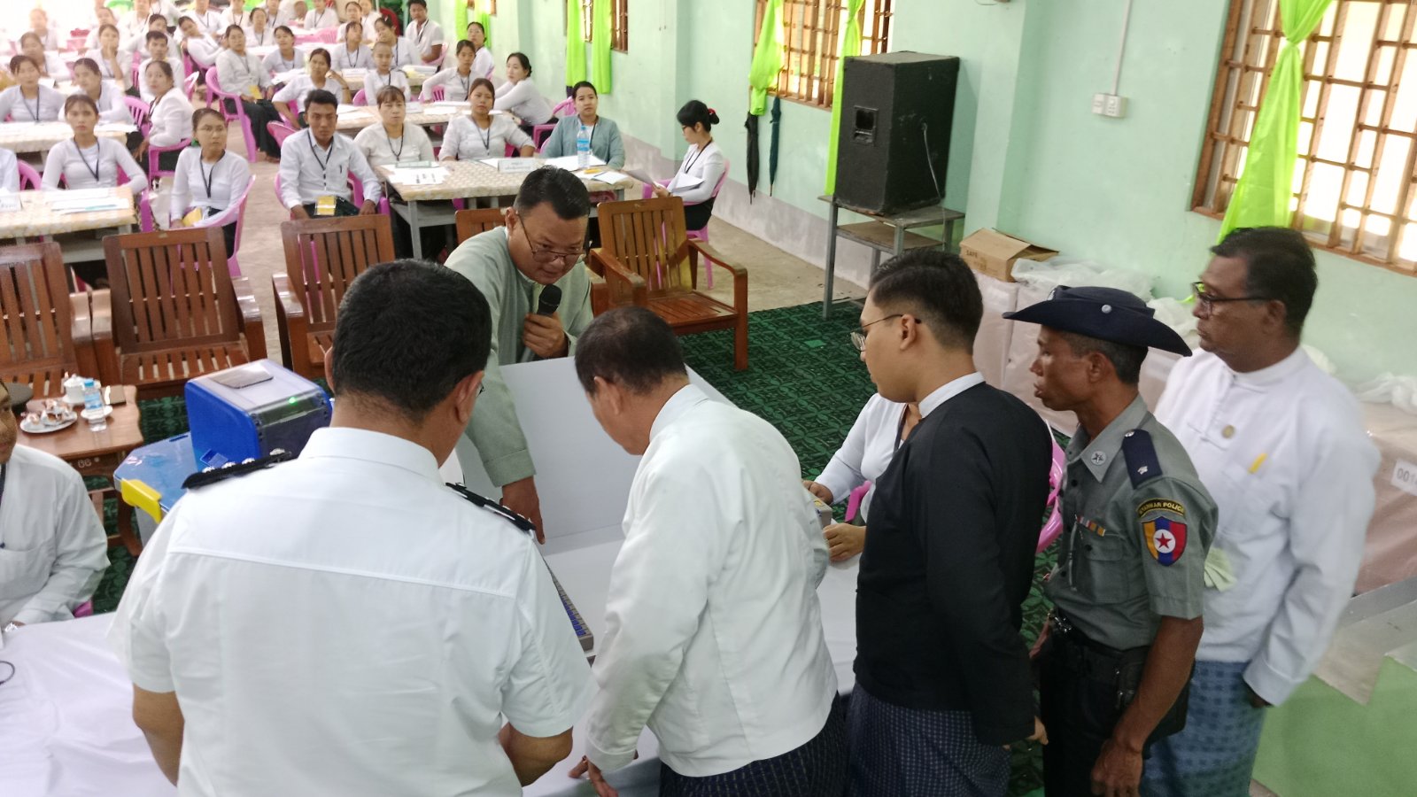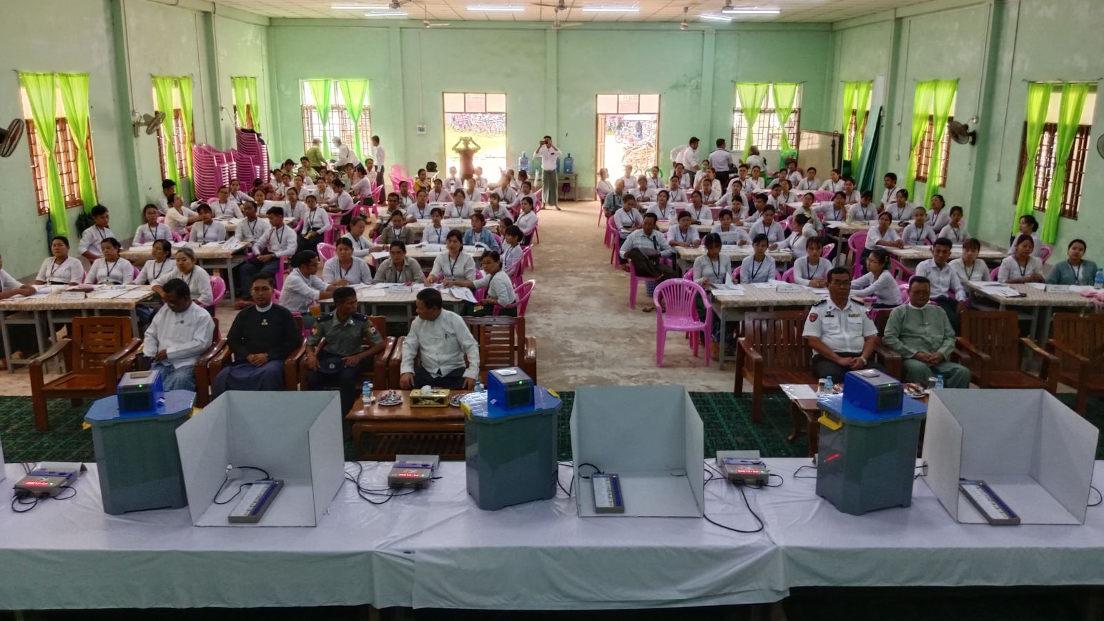 သင်တန်းဖွင့်ပွဲအခမ်းအနားသို့ မြို့နယ်စီမံအဖွဲ့၀င်(၂)၊ မြို့နယ်ရွေးကောက်ပွဲကော်မရှင် အတွင်းရေးမှူး မြို့နယ်အဆင့်ဌာနဆိုင်ရာများ မြန်မာအီလက်ထရောနစ်မဲပေးစက်(MEVM)ဆိုင်ရာ မြို့နယ်အဆင့်လုပ်ငန်းအဖွဲ့ အဖွဲ့ဝင်များ၊ သင်တန်းနည်းပြများနှင့် မြို့နယ်ပညာရေးဌာနမှ သင်တန်းသား၊ သင်တန်းသူ(၁၀၀)ဦး တက်ရောက်ခဲ့ကြပြီး၊ သင်တန်းကို သင်တန်းအပတ်စဥ်အလိုက် နှစ်ရက်သင်တန်းများ ဆက်လက်ဖွင့်လှစ်ပို့ချသွားမည်ဖြစ်ကြောင်း သိရသည်။