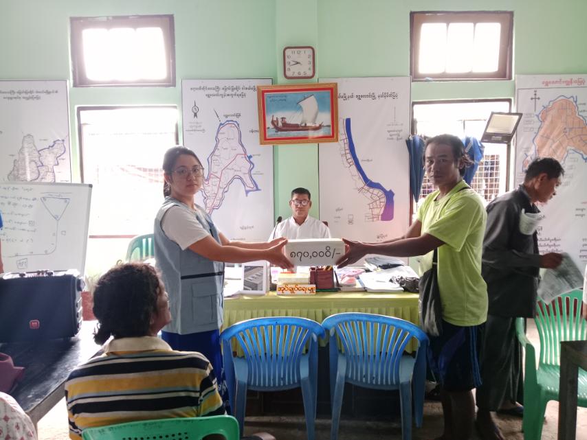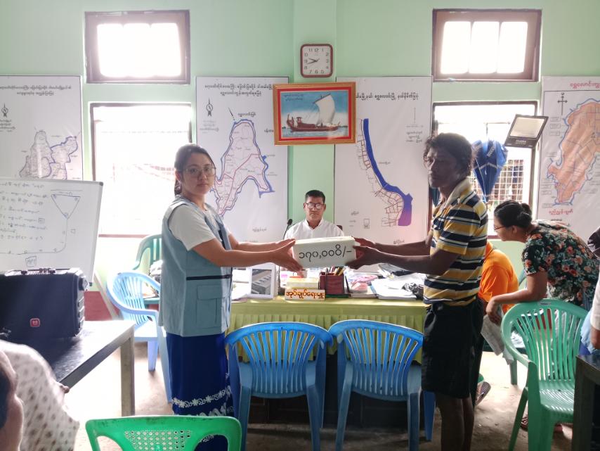 ထိုသို့ပေးအပ်ရာတွင် မြောင်းမြခရိုင်ဘေးအန္တရာယ်ဆိုင်ရာစီမံခန့်ခွဲမှုဦးစီးဌာနမှ တာဝန်ရှိသူများက ဝါးခယ်မမြို့နယ်၊ အရှေ့မြောက်ဘက်၊ ရွှေလောင်းကျေးရွာအုပ်စုနှင့် ကုန်းမိုင် (၇) မိုင်ခန့်အကွာ အထက်ပေကုန်းကျေးရွာအုပ်စု၊ အထက်ပေကုန်းကျေးရွာ၌ ဇူလိုင်လ (၁၂) ရက်နေ့တွင် ဖြစ်ပွား ခဲ့သည့် ကမ်းပြိုဘေးကြောင့် ပြောင်းရွှေ့ခဲ့ရသည့် လူနေအိမ် (၇) လုံးအတွက် အိမ်ဆောက်ပစ္စည်းရန်ပုံငွေ (၇၀၀,၀၀ဝ) ကျပ်၊ အိမ်ထောင်စု (၇) စုမှ လူဦးရေ (၃၄) ဦးအတွက် ဆန်ရိက္ခာဖိုးရန်ပုံငွေ (၁၇၀,၀၀၀) ကျပ် စုစုပေါင်းကယ်ဆယ်ရေးရန်ပုံငွေ (၈၇၀,၀၀၀) တို့အားဘေးသင့်ပြည်သူများ လက်ဝယ်သို့ ပေးအပ်ခဲ့ကြောင်း သိရသည်။
