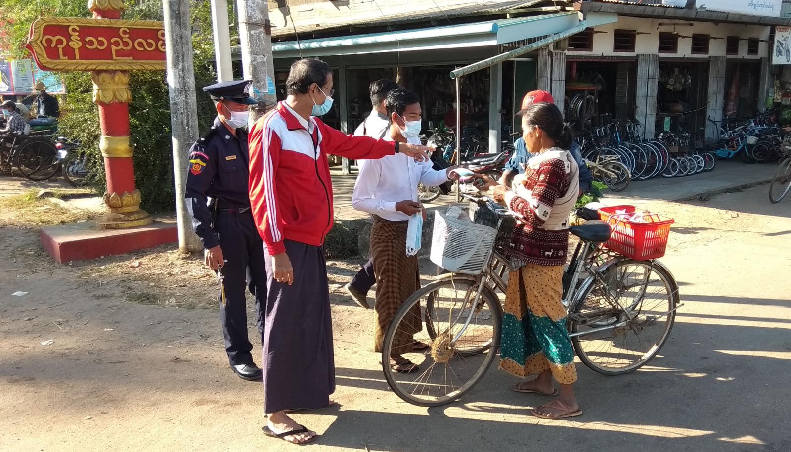 မြို့နယ် ကိုဗစ်-၁၉ ရောဂါထိန်းချုပ်ရေးနှင့် အရေးပေါ်တုံ့ပြန်ရေးကော်မတီ၊ မြို့နယ် ကျန်းမာရေး ဦးစီးဌာန၊ ဌာနဆိုင်ရာများ၊ မီးသတ်တပ်ဖွဲ့ဝင်များ၊ ရဲတပ်ဖွဲ့ဝင်များနှင့် စေတနာ့ ဝန်ထမ်း အဖွဲ့များပူးပေါင်း၍ နေအိမ်ပြင်ပသို့ထွက်ခွာလာသူများကို နှာခေါင်းစည်းများ စနစ်တကျ တပ်ဆင် သွားလာမှု ရှိ/မရှိကို ရှောင်တခင်စစ်ဆေးပြီး၊ နှာခေါင်းစည်း တပ်ဆင်ခြင်း မရှိသူများကို သတ်မှတ်ဒဏ်ကြေး ပေးဆောင်စေ၍ ချက်ချင်းတပ်ဆင်စေခဲ့သည်။