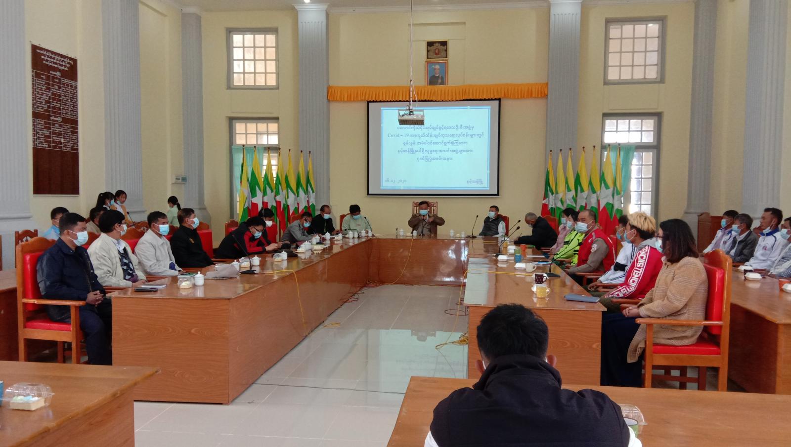 ထို့နောက် မြို့နယ်ဆရာဝန်ကြီး ဒေါက်တာထက်ဖြိုးဝေ က ကိုဗစ်-၁၉ ရောဂါ ကာကွယ်ထိန်း ချုပ်ကုသရေးနှင့်ပတ်သက်၍ ရှင်းလင်းရာတွင် နမ့်ဆန်မှာ ပိုးတွေ့လူနာရှိလာတဲ့အချိန်တွင် အားလုံးရဲ့ပူးပေါင်းပါဝင်မှုကြောင့် ၎င်းတို့နှင့်ထိတွေ့ထားသူများကို စောင့်ကြပ်ကြည့်ရှုရေးစခန်း တွင် အချိန်မီပို့ဆောင်ပြီး ထိန်းချုပ်နိုင်ခဲ့သည်။ ပိုးတွေ့လူနာတွေကိုလည်း အရေးပေါ် ကိုဗစ်ကုသသည့် ဆေးရုံဖွင့်လှစ်ပြီး ဆေးကုသမှုများကိုလုပ်ဆောင်ရာ အခုဆိုရင် ကိုဗစ်-၁၉ ရောဂါကို နောက်ထပ်ကူးစက်မှုမရှိအောင် ထိန်းချုပ်နေနိုင်ပါပြီ။ ကိုဗစ်-၁၉ ကူးစက် ဖြစ်ပွားနေသည့် ကာလမှာ ဆိုင်ပေါင်း(၅၀)ကျော်ကို အရေးပေါ်ပိတ်လိုက်ရပြီး ဒေသခံမိဘပြည်သူများတို့လဲ လူမှုစီးပွားရေးတွေ ထိခိုက်မှုများ ရှိလာခဲ့တယ်။ ဒါကြောင့်မို့ ကိုဗစ်-၁၉ ရောဂါသည် ရောဂါ ဖြစ်ပွားပြီးမှသာ ကာကွယ်ထိန်းချုပ်ကုသသည့် လုပ်ငန်းဆောင်ရွက်ခြင်းထက် မဖြစ်ခင်မှာ ကြိုတင်ကာကွယ်ရေးလုပ်ငန်းတွေ တိတိကျကျနဲ့ဆောင်ရွက်ဖို့လိုအပ်ပြီး အဓိကက ယခုကာလမှာ ကျတော်တို့မြို့နယ်မှာ နောက်ထပ် ရောဂါကူးစက်မှုများ မဖြစ်ပွားစေဖို့ ရေရှည်ကြိုတင် ကာကွယ်ရေးလုပ်ငန်းများ၊ မြို့နယ်အဝင်၊ အထွက် စစ်ဆေးရေးဂိတ်တွင် စနစ်တကျစစ်ဆေးခြင်း လုပ်ငန်းများ၊ အသွားအလာကန့်သတ်စစ်ဆေးခြင်းလုပ်ငန်းကို ဒေသတာဝန်ရှိလူကြီးများနှင့် ဌာနဆိုင်ရာများ၊ ကျေးရွာများအပါအဝင် မြို့ယ် ကိုဗစ်-၁၉ ကာကွယ်ထိန်းချုပ်ကုသရေးကော်မတီ၏ လမ်းညွှန်ချက်နှင့်အညီ စနစ်တကျဆောင်ရွက်ဖို့လိုကြောင်း၊ ဒါ့အပြင် ကိုဗစ်-၁၉ တိုက်ဖျက်ရေး လုပ်ငန်းမှာ တက်တက်ကြွကြွ ပါဝင်ပေးသည့်အဖွဲ့အစည်းများ၊ စေတနာ့ဝန်ထမ်းများတွေကို ဂုဏ်ပြု ကြောင်း ပြောကြားခဲ့သည်။