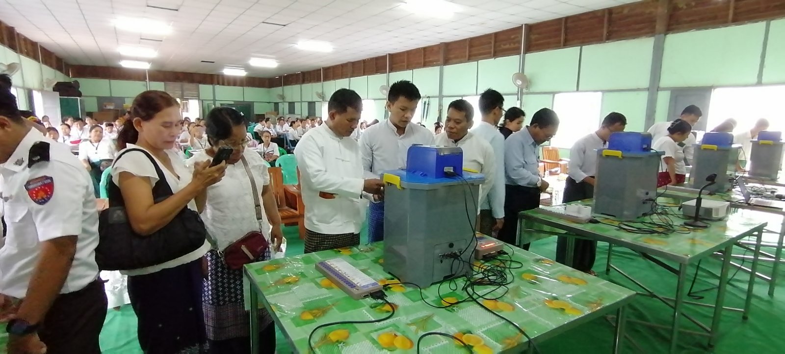 ရန်ကုန်တိုင်းဒေသကြီး၊ မှော်ဘီခရိုင်၊ မှော်ဘီမြို့နယ်၌ မြန်မာ့အီလက်ထရောနစ်မဲပေးစက် (MEVM) ကိုင်တွယ်အသုံးပြုခြင်းဆိုင်ရာ သင်တန်းဖွင့်ပွဲကို ယမန်နေ့ နံနက် (၉) နာရီအချိန်က အခြေခံပညာဦးစီးဌာန အ.ထ. က -(၁) ပညာရတနာခန်းမ၌ ကျင်းပပြုလုပ်ခဲ့သည်။