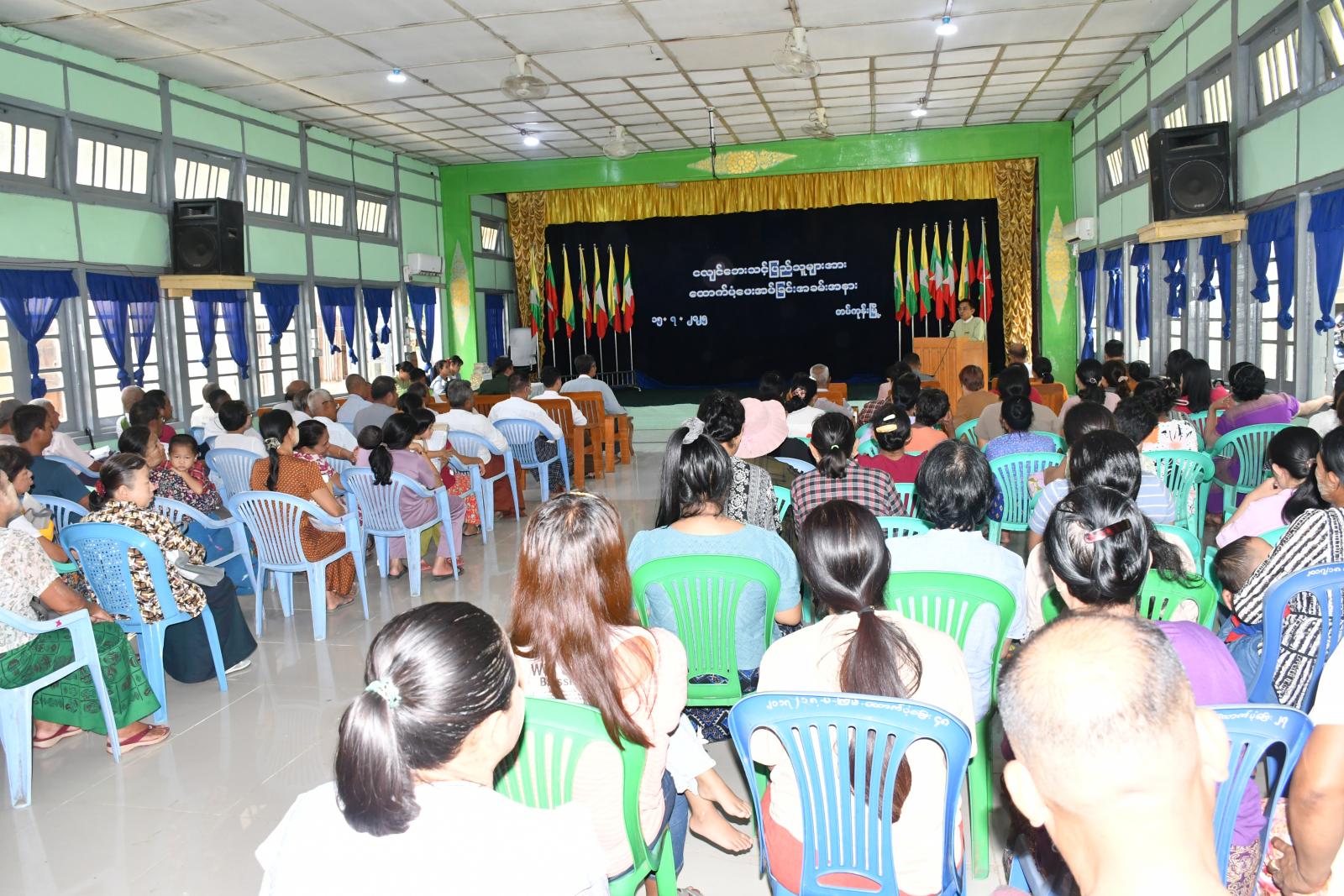 အခမ်းအနားတွင် မြို့နယ်စီမံအုပ်ချုပ်ရေးအဖွဲ့ဥက္ကဋ္ဌ ဦးအောင်သူက အားပေးစကားနှင့် သဘာဝဘေးအန္တရာယ်ကြိုတင်ကာကွယ်ရေး ဇာတ်တိုက်လေ့ကျင့်ဆောင်ရွက်မည့်အစီအမံများ ရှင်းလင်းပြောကြားပြီးနောက် မြို့နယ်စီမံအုပ်ချုပ်ရေးအဖွဲ့ဥက္ကဋ္ဌ၊ ညွှန်ကြားရေးမှူး ဦးစဝီလီဖရန့်နှင့်တာဝန်ရှိသူများက ငလျင်ဘေးသင့်တစ်စိတ်တစ်ပိုင်းပျက် အိမ်ထောင်စု ၂၇၄၅ စု အတွက် အိမ်ထောင်စု တစ်စုလျှင် ၅၀,၀၀၀ ကျပ်နှုန်းဖြင့် ပြည်သူများ လက်ဝယ်အရောက် ထောက်ပံ့ပေးအပ်ခဲ့ကြောင်း သိရသည်။