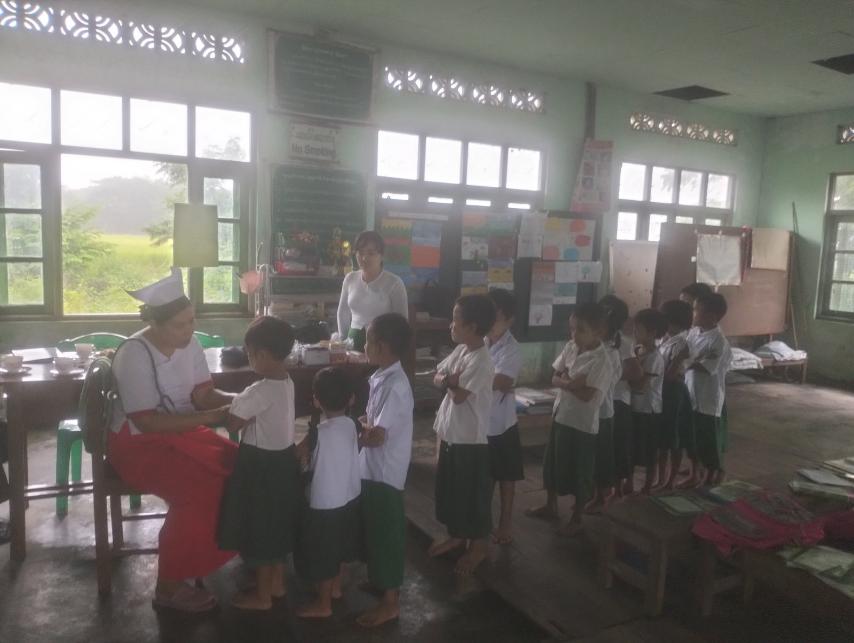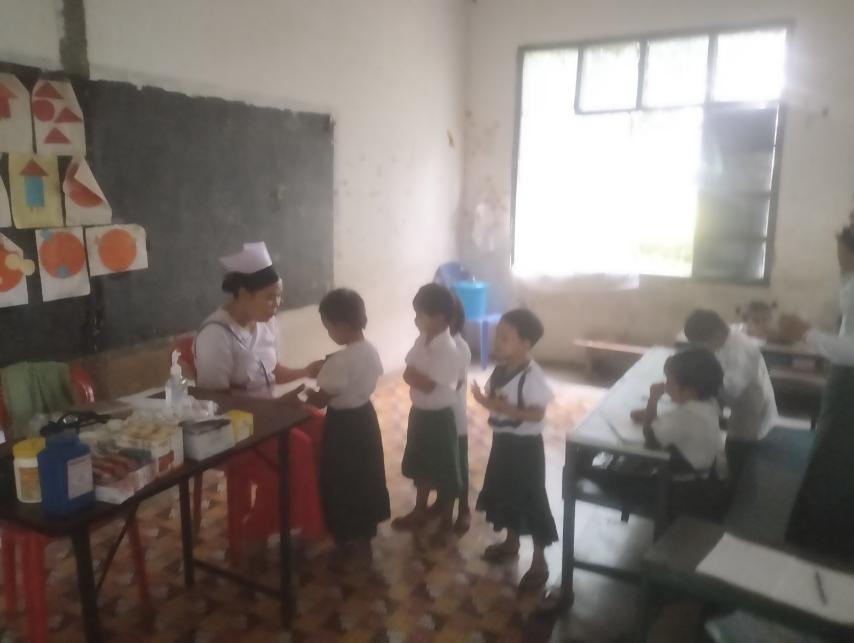 ထို့နောက် ကျန်းမာရေးဝန်ထမ်းများက အဖွဲ့များခွဲကာ ကျောင်းသား၊ ကျောင်းသူများအား သံချဆေးတိုက်ကျွေးခြင်းများနှင့် ကျန်းမာရေးစစ်ဆေးခြင်းများ ဆောင်ရွက်ပေးခဲ့ကြောင်း သိရသည်။