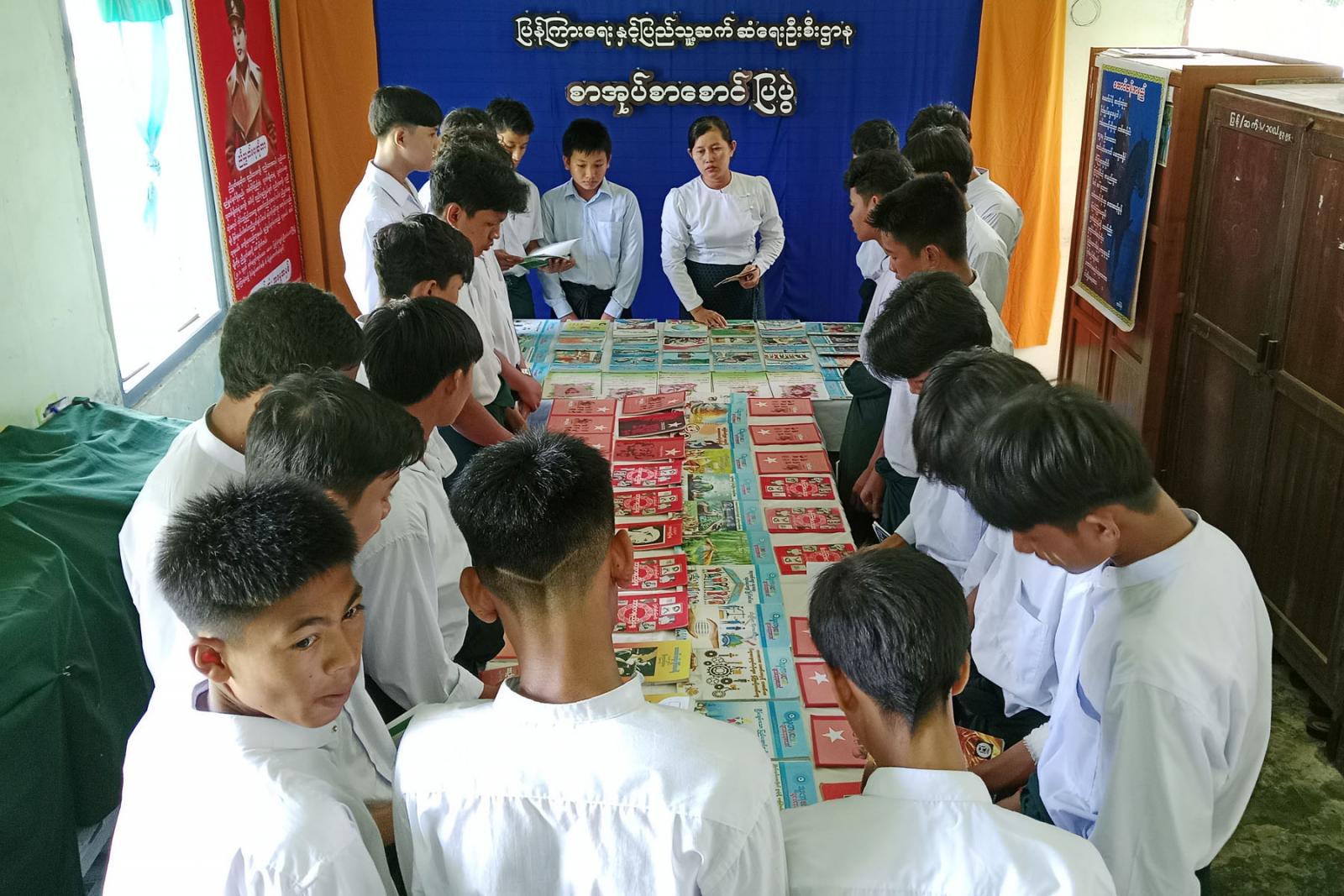 ယင်းနောက် မြန်မာ့လွတ်လပ်ရေးဗိသုကာကြီး ဗိုလ်ချုပ်အောင်ဆန်း၏ လွတ်လပ်ရေး ကြိုးပမ်းဆောင်ရွက်မှု မှတ်တမ်းဓာတ်ပုံများ၊ မိန့်ခွန်းကောက်နုတ်ချက်များ၊ အာဇာနည်ခေါင်းဆောင် ကိုးဦး၏ အတ္ထုပ္ပတ္တိများ၊ ကဗျာ၊ ဆောင်းပါးများစသည့် နံရံကပ်စာစောင်များ၊ စာအုပ်စာစောင်များ ခင်းကျင်းပြသထားရာ ကျောင်းသားကျောင်းသူများက စိတ်ပါဝင်စားစွာ လေ့လာဖတ်ရှုခဲ့ကြကြောင်း သိရသည်။
