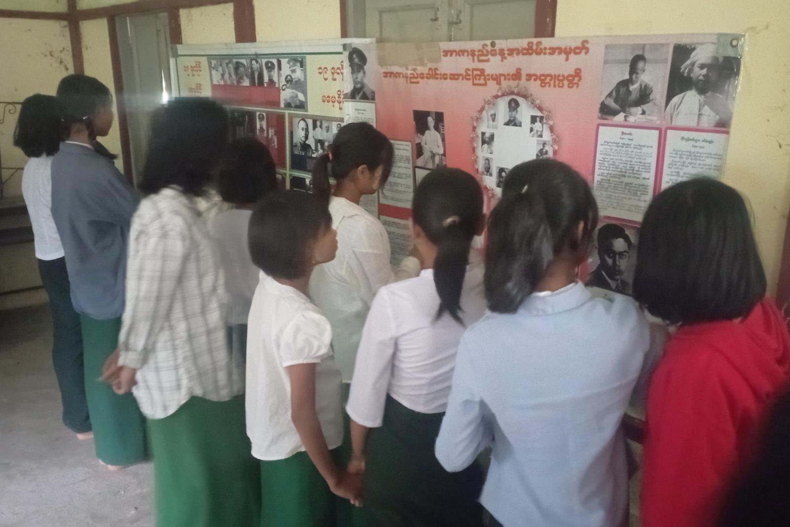 ထို့နောက် မြို့နယ်ပြန်ကြားရေးနှင့်ပြည်သူ့ဆက်ဆံရေးဦးစီးဌာနမှ ပြသထားသည့် အာဇာနည်နေ့အထိမ်းအမှတ်နှင့် ဗဟုသုတရဖွယ်ရာအသိပညာနံရံကပ် စာစောင်များကို ကျောင်းသား၊ ကျောင်းသူများက လေ့လာကြည့်ရှုခဲ့ကြောင်း သိရသည်။