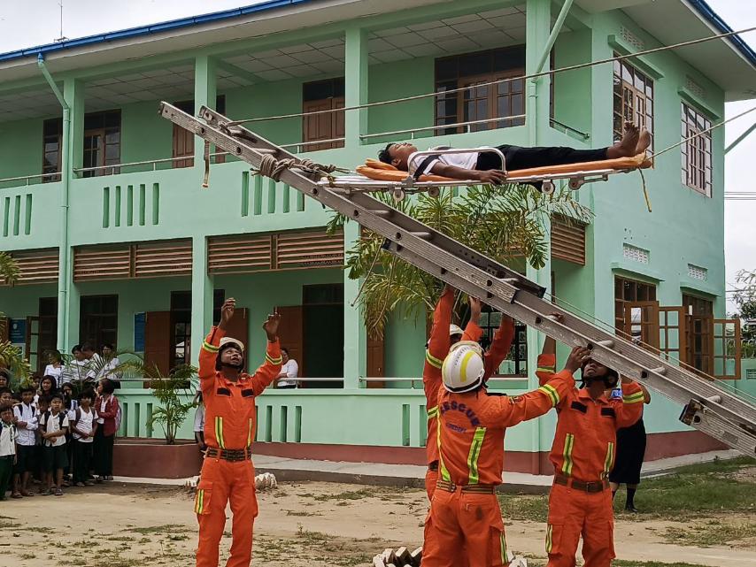 အလားတူ မြို့နယ်မီးသတ်ဦးစီးမှူး ဦးဇင်မိုအောင်နှင့် မီးသတ်တပ်ဖွဲ့ဝင်များသည် မုံရွာမြို့၊ အောင်ချမ်းသာရပ်ကွက်၊ အမှတ်(၅) အခြေခံ ပညာအထက်တန်းကျောင်းတွင်လည်း နံနက် ၁၁ နာရီအချိန်က သဘာဝဘေးအန္တရာယ် အသိပညာပေးဟောပြောခြင်း၊ ငလျင်ဘေးသဏ္ဌာန်တူ ဇာတ်တိုက်လေ့ကျင့်မှုများနှင့် လက်တွေ့မီးငြှိမ်းသတ်ခြင်းများကို ကွင်းဆင်းအသိပညာပေး ဆောင်ရွက်ခဲ့ကြကြောင်း သိရသည်။