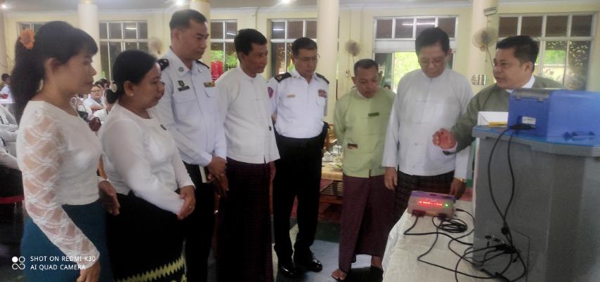 ရန်ကုန်တိုင်းဒေသကြီး၊ သန်လျင်မြို့နယ်၊ သာသနာ့ဗိမာန်ခန်းမတွင် မြန်မာအီလက်ထရောနစ်မဲပေးစက် (MEVM) ကိုင်တွယ်အသုံးပြုနည်းသင်တန်းဖွင့်ပွဲ အခမ်းအနားကို ယမန်နေ့ နံနက်ပိုင်းက ပြုလုပ်ခဲ့ကြောင်း သိရသည်။