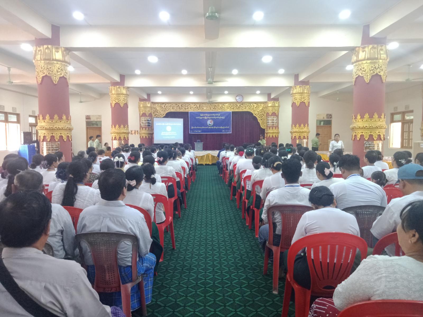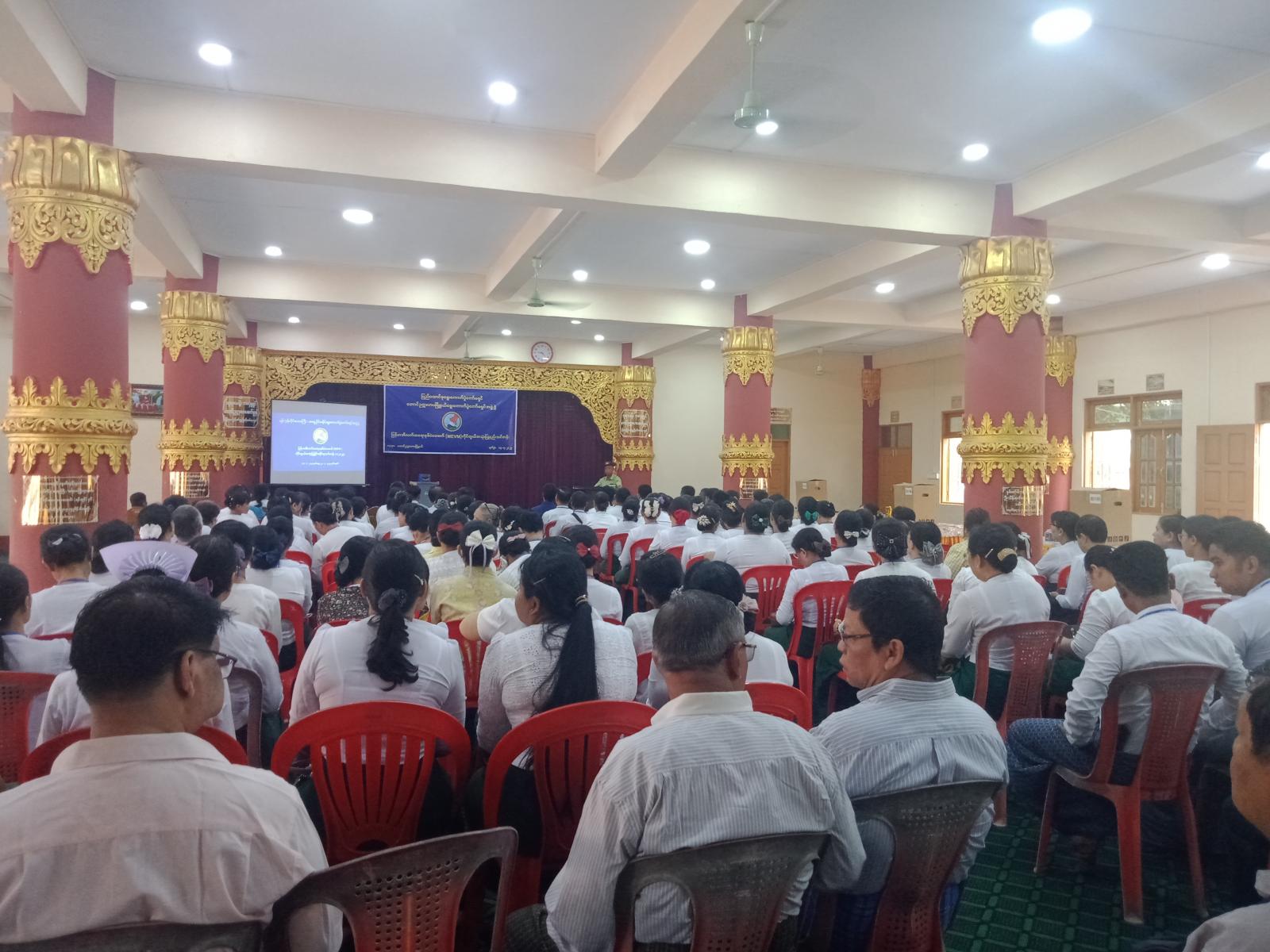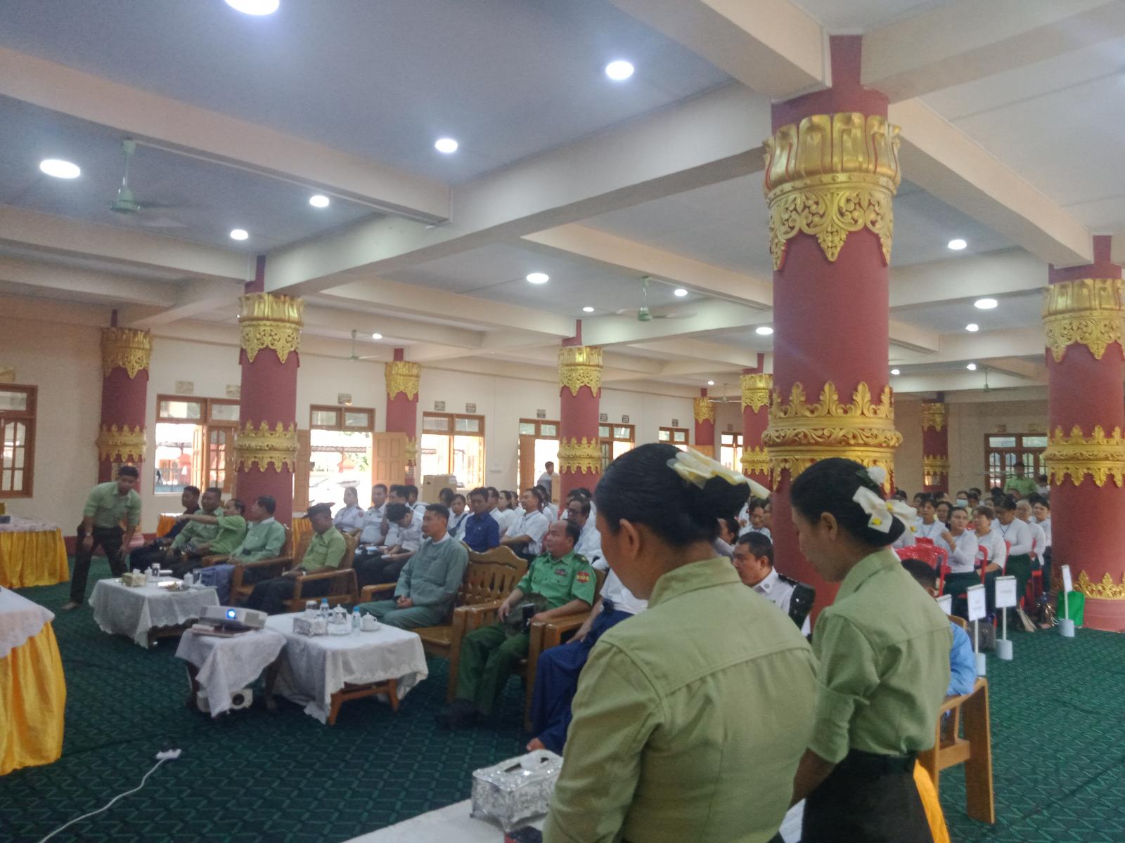 သင်တန်းဖွင့်ပွဲအခမ်းအနားတွင် ခရိုင်စီမံအုပ်ချုပ်ရေးအဖွဲ့ဥက္ကဋ္ဌ ဦးဇော်မိုးထိုက်က အဖွင့်အမှာစကားပြောကြားခဲ့ပါသည်။