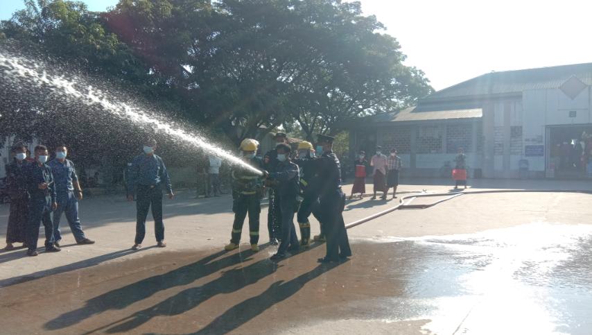 ထို့နောက် ဇမ္ဗူသီရိမြို့နယ် မီးသတ်ဦးစီးမှူး ဦးစီးအရာရှိ ဉီးဝင်းကျော်နှင့် မီးသတ်တပ်ဖွဲ့ဝင်များမှ မီးဘေးလုံခြုံရေးအတွက် ဈေးဆိုင်ခန်းများအား စစ်ဆေးခြင်း၊ အရေးပေါ် ဆက်သွယ်ရမည့် ဖုန်းနံပါတ်များ၊ လိုက်နာ ဆောင်ရွက်ရမည့် အချက်များ၊ မီးသတ်ဆေးဘူး အသုံးပြုနည်းများအား အသိပညာပေး ပြောကြားပြီး မီးသတ်ယာဉ်၊ မီးသတ်ဆေးဘူးများဖြင့် မီးငြိမ်းသတ်ခြင်းများကို လက်တွေ့ သရုပ်ပြခဲ့ကြောင်း သိရသည်။
