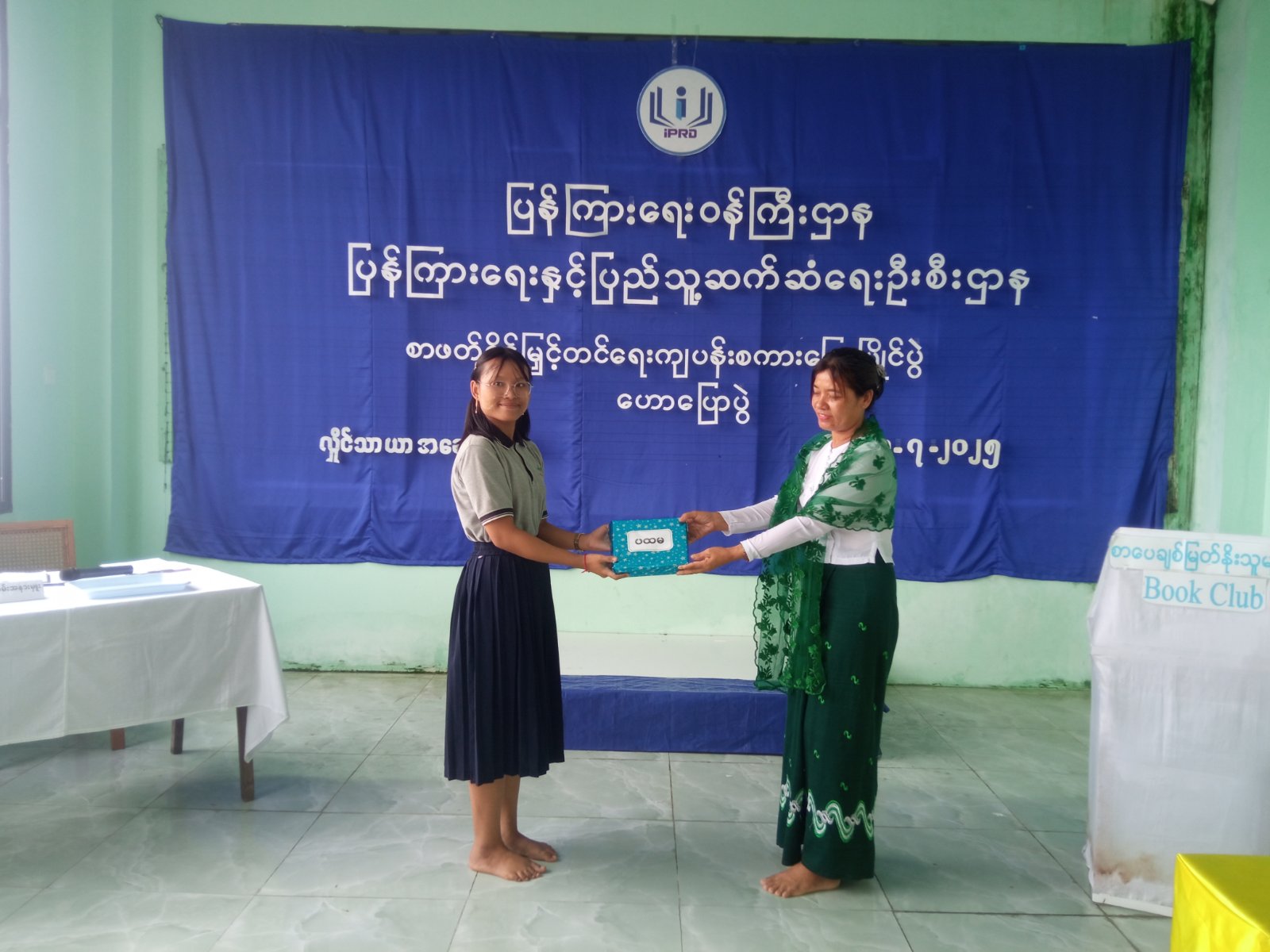 ယင်းနောက် ပြိုင်ပွဲဝင် ကျောင်းသား၊ ကျောင်းသူ(၈)ဦးတို့က ကျရာခေါင်းစဉ်များဖြင့် ပြိုင်ပွဲဝင်ကြပြီး၊ ပြိုင်ပွဲ၌ ပ၊ ဒု၊ တ ဆုရရှိကြသည့် ကျောင်းသား/ ကျောင်းသူများအား ဆုအသီးသီးချီးမြှင့်ပေးခဲ့ကြကြောင်း သတင်းရှိသည်။