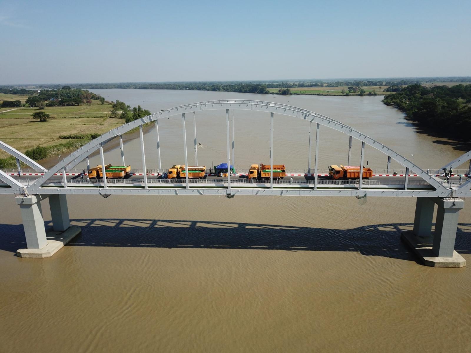 စမ်းသပ်စစ်ဆေးရာတွင် တံတားပေါ်၌ မီတာ (၉၀) အကျယ်ရှိသော အခန်းတွင် တန် (၂၀) အလေးချိန်ရှိသော (၁၀) ဘီးကားရှစ်စီးဖြင့် တံတား၏ ခံနိုင်ဝန်ကို သိရှိရန် တံတား၏ ကွေးညွတ်မှုကို တိုင်းတာခြင်း၊ သံမဏိသံပေါင်များ အတွင်းရှိ ခံနိုင်စွမ်းအား တိုင်းတာခြင်း သိရှိရန်အတွက် Static Load Test ဆောင်ရွက်ခြင်းကို ဆောက်လုပ်ရေးဝန်ကြီးဌာန၊ တံတားဦးစီး ဌာန၊ အရည်အသွေးထိန်းသိမ်းရေးဌာနခွဲမှ ညွှန်ကြားရေးမှူး ဦးဇော်လင်းမြနှင့် တာဝန်ရှိသူများက ဆောင်ရွက်ခဲ့ပြီး တိုင်းတာတွက်ချက်မှုအရ ထွက်ရှိလာ သော ရလဒ်များမှာ သတ်မှတ်ချက် အတွင်းရရှိသဖြင့် တံတားအား Fit for Service အဖြစ် သတ်မှတ်ကြောင်း သိရသည်။