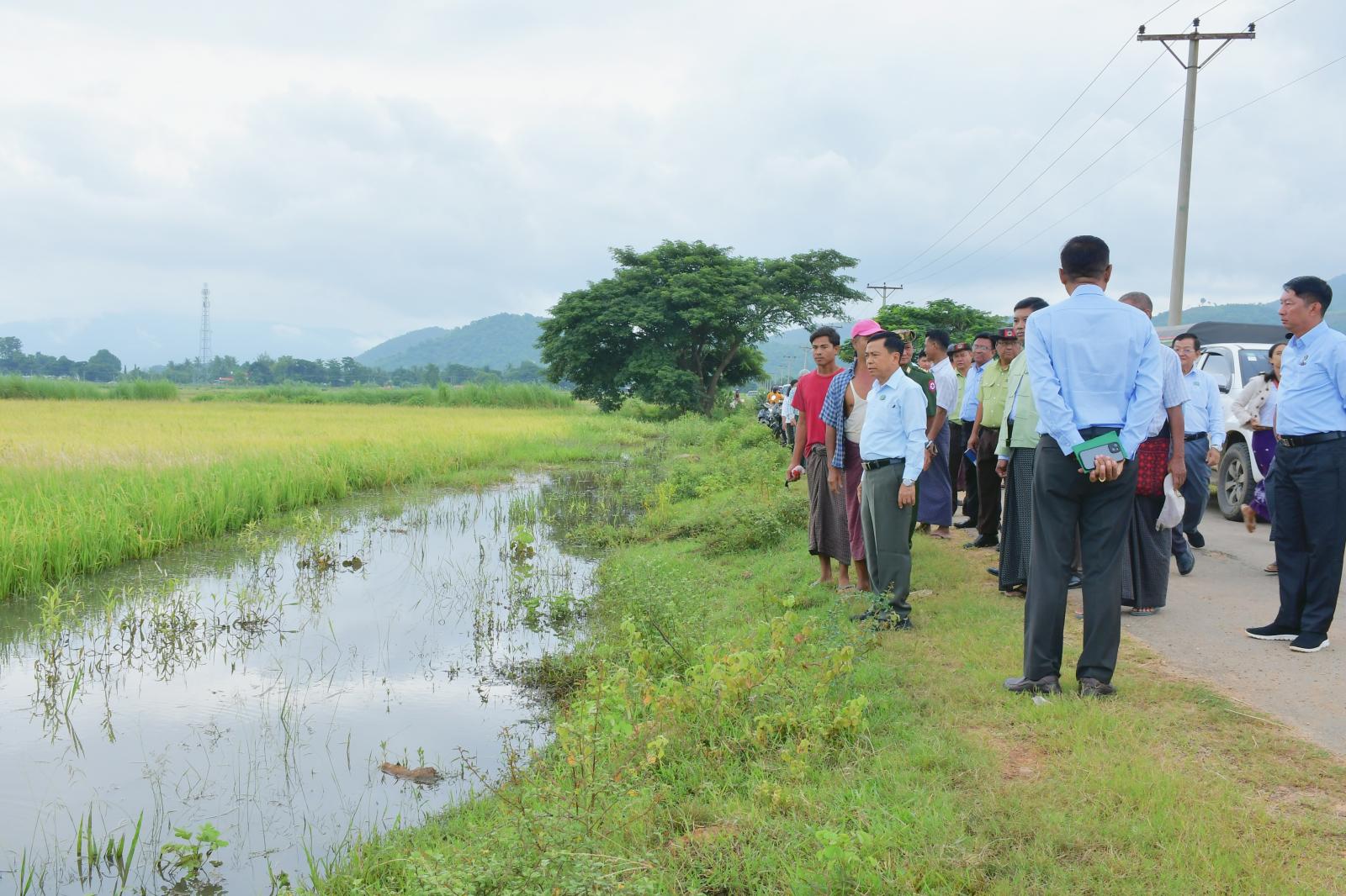 ထို့နောက် နေပြည်တော်ကောင်စီဥက္ကဋ္ဌ ဦးသန်းထွန်းဦးသည် ပျဉ်းမနားမြို့နယ်၊ နတ်သူရဲ ကျေးရွာအုပ်စု၊ တာတိုင်ကုန်းရွာ ကွင်းအမှတ်(၁၇၁၁)သို့သွားရောက်ပြီး မိုးစပါးစိုက်ခင်းများ ရေဝင်ရောက်မှုအခြေအနေများကို ကြည့်ရှုစစ်ဆေးကာရေဝင်ရောက်ပျက်စီးသည့် လယ်များမှတောင်သူများအား မိုးစပါးပြန်လည်စိုက်ပျိုးနိုင်ရန်အတွက် မျိုးစပါးနှင့်သွင်းအားစုများ ပေးအပ်ခဲ့သည်။