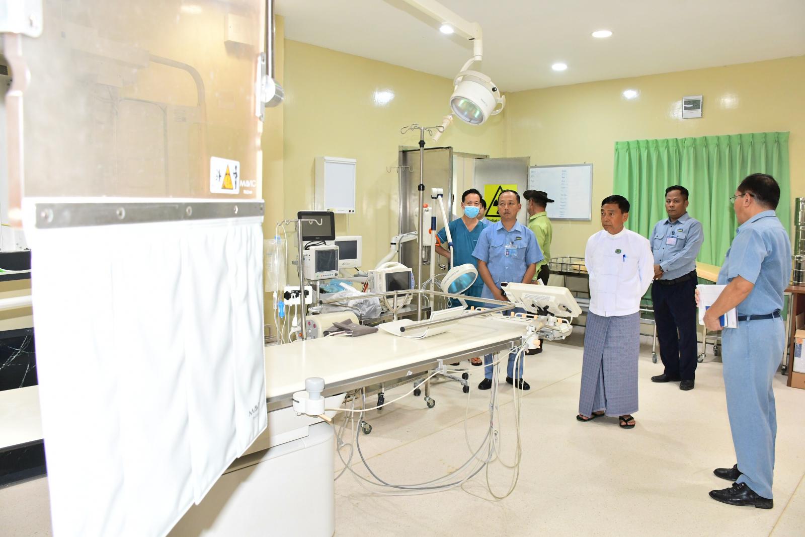 ယင်းနောက် ဆေးရုံအတွင်း ငလျင်ဘေးကြောင့်ထိခိုက်ပျက်စီးမှုများအား ပြန်လည်ပြုပြင်ထားရှိမှုနှင့် ကျန်းမာရေးသုံးစက်ကိရိယာများကို ပြင်ဆင်အသုံးပြုဆောင်ရွက်နေမှုများအား လှည့်လည်ကြည့်ရှုစစ်ဆေးခဲ့ကြောင်း သိရသည်။