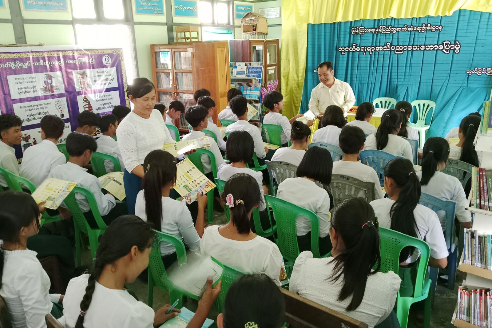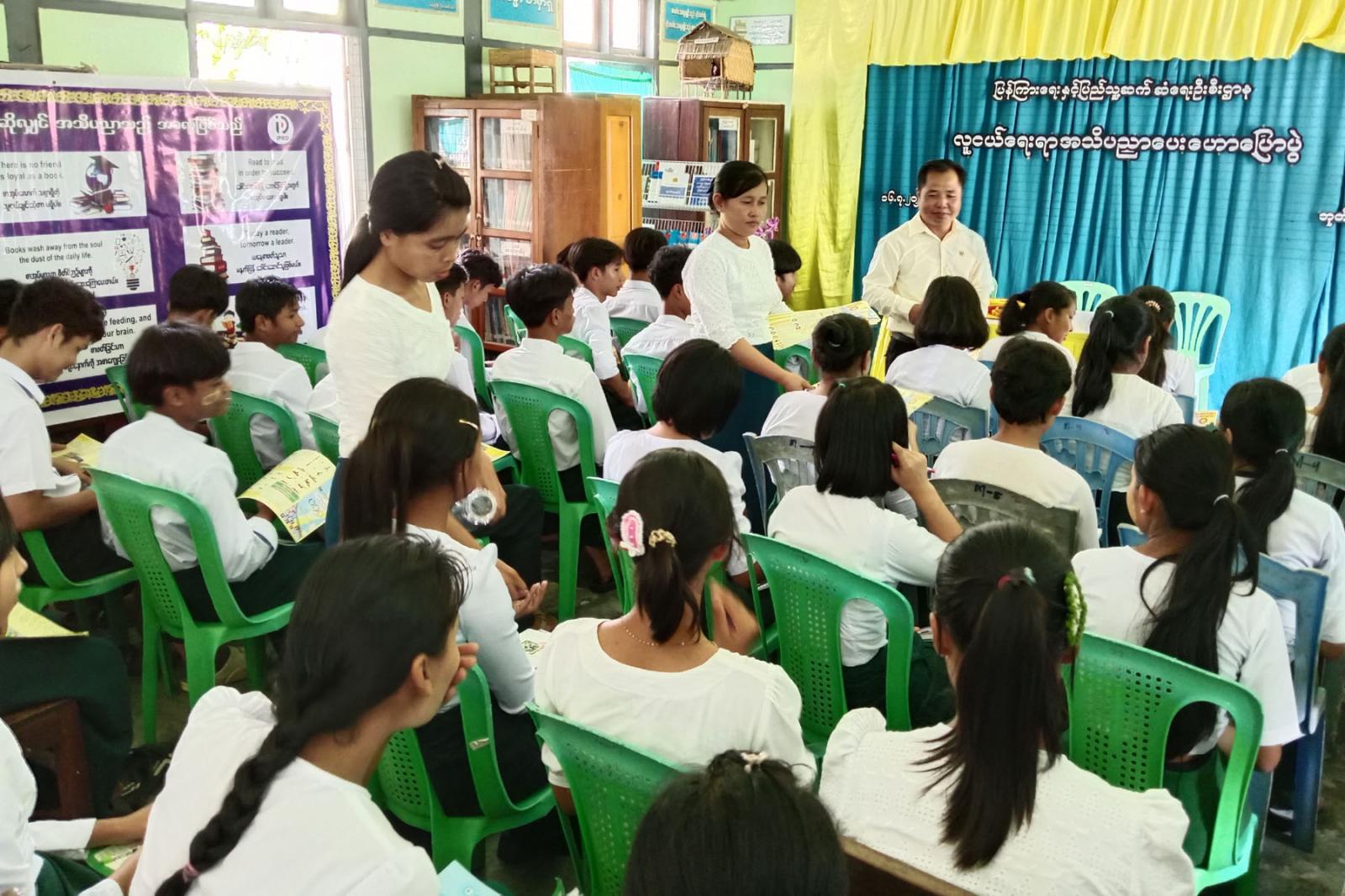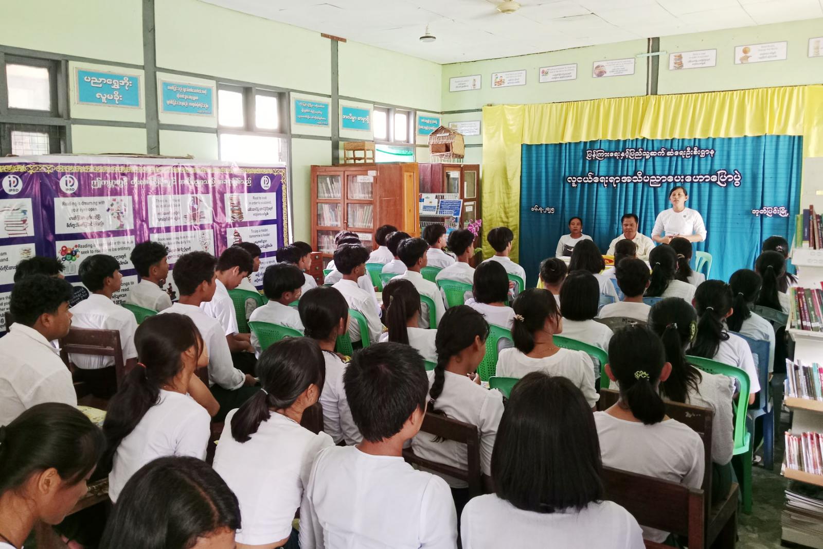 အသိပညာပေးဟောပြောပွဲတွင် မြို့နယ်ပြန်ကြားရေးနှင့်ပြည်သူ့ဆက်ဆံရေးဦးစီးဌာနမှ မြို့နယ်ဦးစီးမှူး ဒေါ်ဖြူဖြူသိန်းက လူငယ်နှင့်စာဖတ်ခြင်း ခေါင်းစဉ်ဖြင့် ဟောပြောခဲ့ရာ “ကျောင်းသား/ ကျောင်းသူများအနေဖြင့် နောင်တစ်ချိန်တွင်နိုင်ငံနှင့် လူမျိုးအကျိုးအတွက် သယ်ပိုးထမ်းရွက်ကြရမည်ဖြစ်ပြီး ယခုအရွယ်မှစ၍ ဗလငါးတန်နှင့် ပြည့်စုံအောင်၊ နိုင်ငံနှင့်လူမျိုးကို ချစ်မြတ်နိုးတတ်အောင်၊ တန်ဖိုးထားတတ်အောင် အသိပညာ၊ အတတ်ပညာများကို လေ့လာဆည်းပူးကြစေလိုပါကြောင်း၊ ရည်မှန်းချက်ထားရှိရမှာဖြစ်ကြောင်း၊ ပြင်ပဗဟုသုတရရှိစေရန် စာပေများဖတ်ရှုလေ့လာကြစေလိုပါကြောင်း၊ ပြန်ကြားရေးနှင့်ပြည်သူ့ဆက်ဆံရေးဦးစီးဌာန၊ ပြည်သူ့စာကြည့်တိုက်တွင် အသိပညာဗဟုသုတရရှိစေရန် စာအုပ်စာပေများနှင့် သုတရသစာအုပ် စာစောင်များကို အခမဲ့လာရောက်ဖတ်ရှုပြီး ငှားရမ်းနိုင်ကြောင်း အသီးသီး ပြောကြားခဲ့ကြသည်။