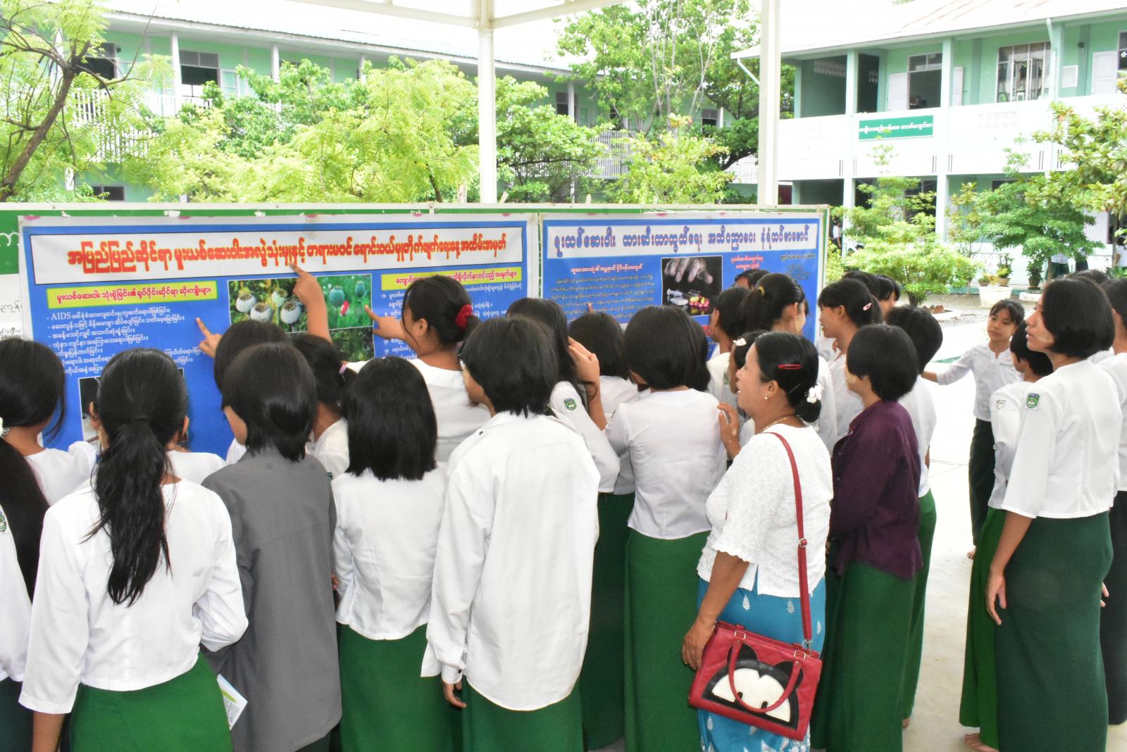 ပြန်ကြားရေးနှင့်ပြည်သူ့ဆက်ဆံရေးဦးစီးဌာနမှ ကျောင်းသားလူငယ်များ စာအုပ်စာပေများ ရင်းနှီးကျွမ်းဝင် စေရန်နှင့် အသိပညာဗဟုသုတများ ပြည့်ဝစေရန်အတွက် သုတ၊ ရသစာအုပ်များကို ခင်းကျင်းပြသခဲ့ပြီး၊ လူငယ်များ၏ ဘဝတက်လမ်းကို ဖျက်ဆီးစေနိုင်သည့် မူးယစ်ဆေးဝါးအန္တရာယ်ကာကွယ်တားဆီးရေးနှင့် လူငယ်များ၏ ပညာရေးကိုထိခိုက်စေသည့် ကလေးအလုပ်သမားပပျောက်ရေးဆိုင်ရာ နံရံကပ်စာစောင်များ ခင်းကျင်းပြသခဲ့ကြောင်း သိရသည်။