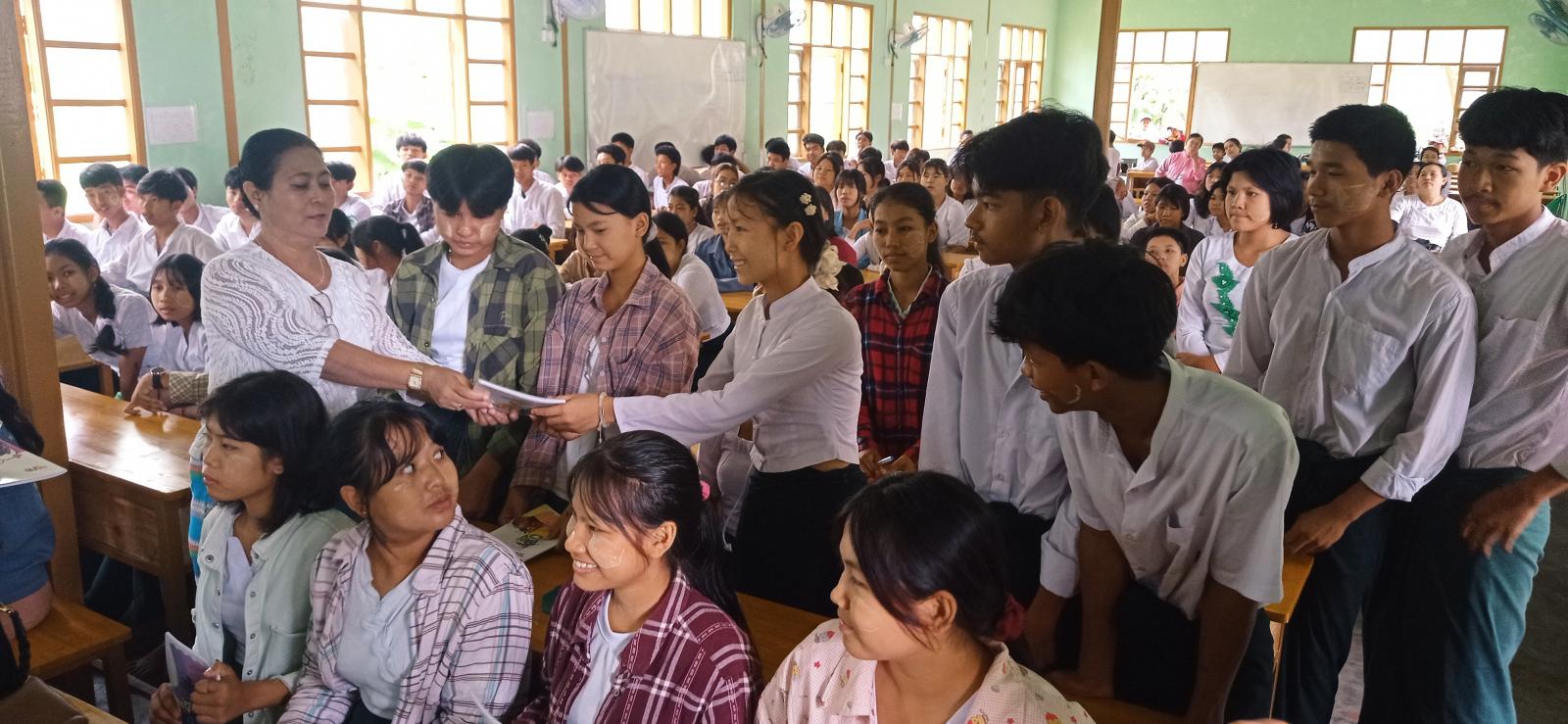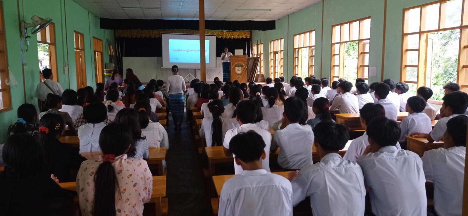 အသိပညာပေးဟောပြောပွဲတွင် ခရိုင်ပြန်ကြားရေးနှင့်ပြည်သူ့ဆက်ဆံရေးဦးစီးဌာနမှ လက်ထောက်ညွှန်ကြားရေးမှူး ဒေါ်စောကလျာက (၇၈) နှစ်မြောက် အာဇာနည်နေ့ အထိမ်းအမှတ် "အာဇာနည်အဓိပ္ပာယ်နှင့်အာဇာနည်ကြီးများ" ခေါင်းစဉ်ဖြင့်လည်းကောင်း၊ ခရိုင်လူမှုဝန်ထမ်းဦးစီးဌာနမှ လက်ထောက်ညွှန်ကြားရေးမှူး ဒေါ်ခင်အေးမော်က " အဆိုးရွာဆုံးပုံစံဖြင့် ခိုင်းစေခြင်းခံရသော ကလေးအလုပ်သမား ဖယ်ရှားရေးနှင့် ပြန်လည်ကုစားရေး" အကြောင်းအရာများကို ဟောပြောခဲ့ပြီး မေးခွန်းမေးမြန်းခြင်းများပြုလုပ်ခဲ့ရာ အကောင်းဆုံးဖြေကြားနိုင်ခဲ့ကြသော ကျောင်းသား/ကျောင်းသူများအား ဆုလက်ဆောင်ပစ္စည်းများ ချီးမြှင့်ပေးခဲ့သည်။