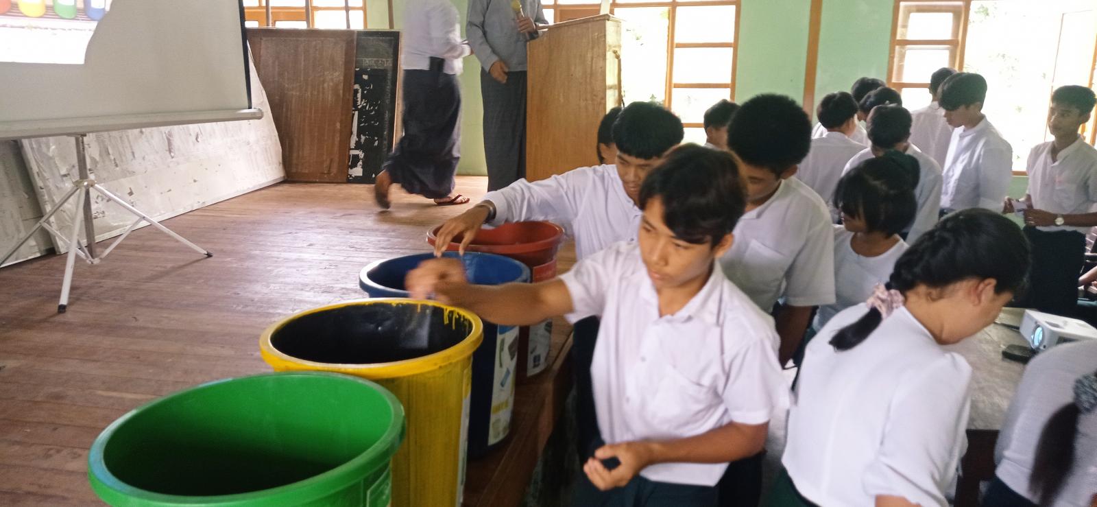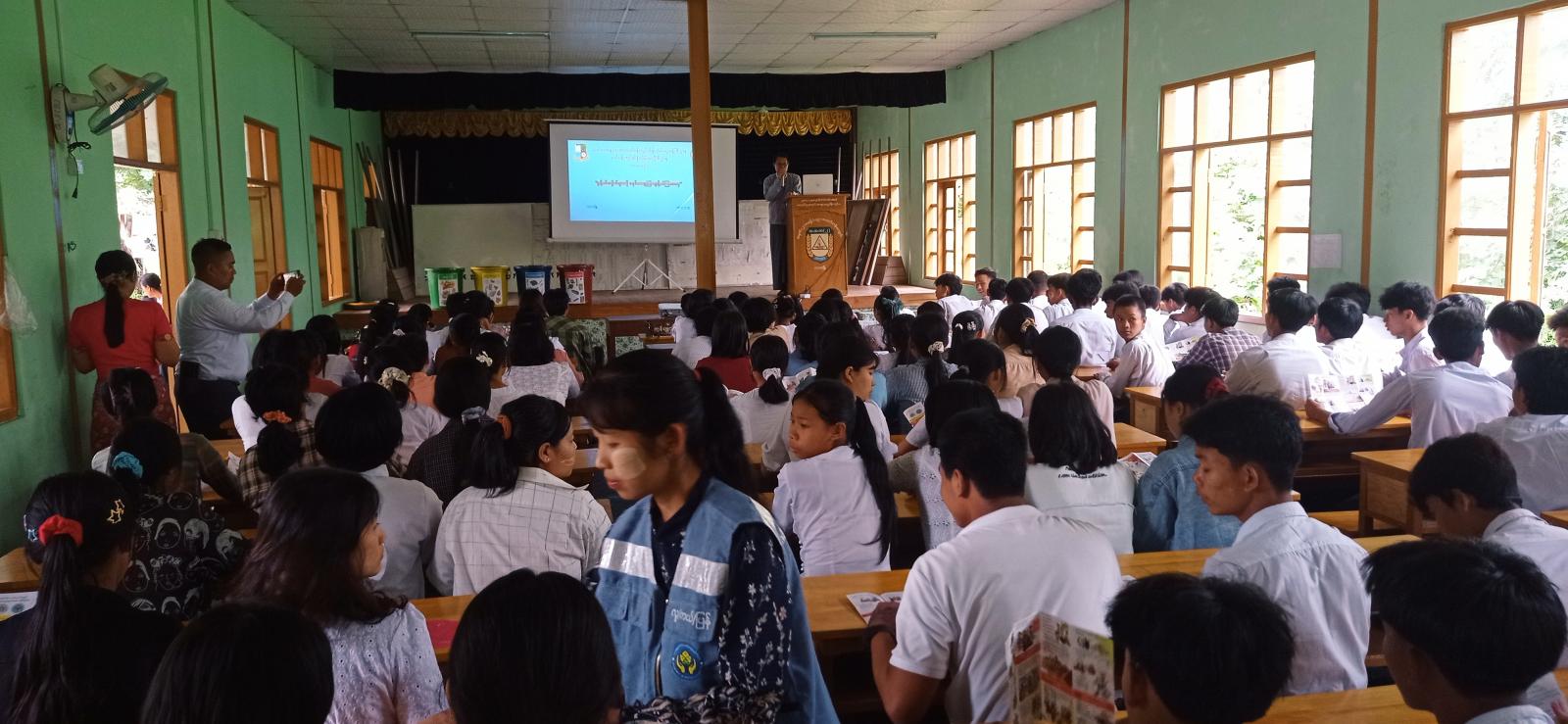 ဆက်လက်ပြီး ခရိုင်ဘေးအန္တရာယ်ဆိုင်ရာစီမံခန့်ခွဲမှုဦးစီးဌာနမှ ဦးစီးအရာရှိ ဒေါ်ဇင်မာအောင်က "သဘာဝဘေးအန္တရာယ်ဆိုင်ရာ" ခေါင်းစဉ်ဖြင့်ဟောပြော ပြီးလက်ကမ်းစာစောင်များ ဖြန့်ဝေခဲ့သည်။ ခရိုင်ပတ်ဝန်းကျင်ထိန်းသိမ်းရေးဦးစီးဌာနမှ လက်ထောက်ညွှန်ကြားရေးမှူး ဦးဟိန်းကိုဦးက "စွန့်ပစ်အမှိုက်အမျိုးအစားများကို စနစ်တကျခွဲခြားစွန့်ပစ်စေရေး" ခေါင်းစဉ်ဖြင့်လည်းကောင်း၊ အသီးသီးဟောပြောခဲ့ကြပြီး သိပညာပေးဟောပြောပွဲသို့ တက်ရောက်လာကြသည့် ကျောင်းသား/ ကျောင်းသူများက အမှိုက်အမျိုးအစားခွဲခြားစွန့်ပစ်ခြင်းနှင့် လက်တွေ့သရုပ်ပြသခြင်းကို ပြုလုပ်ဆောင်ရွက်ခဲ့ကြေကြာင်းနှင့် အမှတ် (၂) အခြေခံပညာအထက်တန်းကျောင်းမှ ကျောင်းအုပ်ဆရာကြီး ဦးအေးလွင်က ကျေးဇူးတင်စကားပြောကြားခဲ့သည်။
