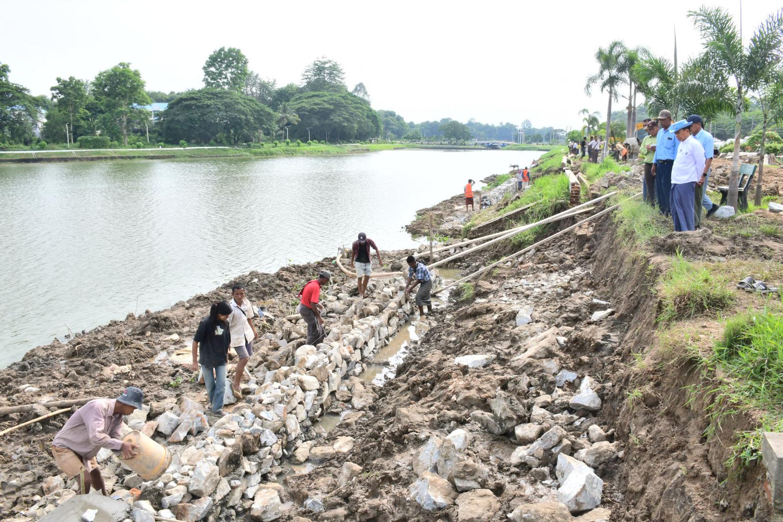 ယင်းနောက် နေပြည်တော်ကောင်စီဥက္ကဋ္ဌ ဦးသန်းထွန်းဦးသည် မင်္ဂလာကန်သို့သွားရောက်ပြီး ငလျင်ဘေးကြောင့် ထိခိုက်ပျက်စီးခဲ့သည့် ကမ်းထိန်းနံရံများ ပြန်လည်ပြုပြင်ဆောင်ရွက်နေမှုကို ကြည့်ရှုစစ်ဆေးခဲ့ကြောင်း သိရသည်။