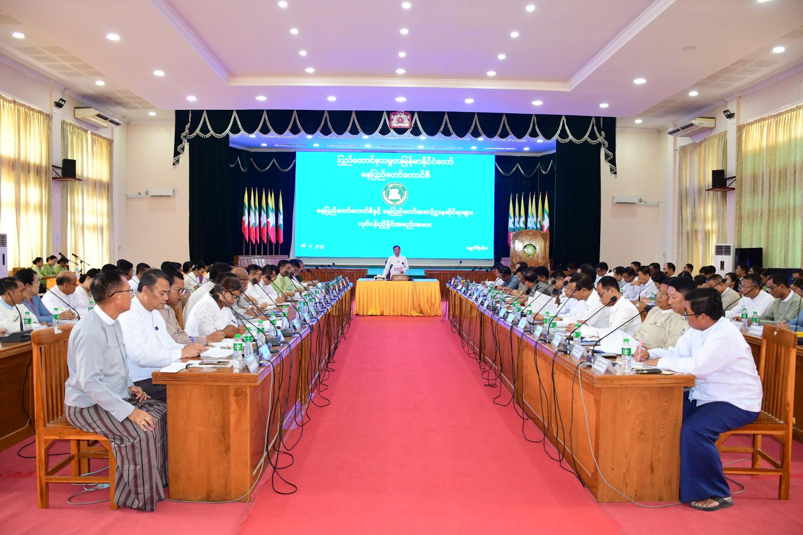 ဦးစွာ နေပြည်တော်ကောင်စီဥက္ကဋ္ဌ ဦးသန်းထွန်းဦးက အမှာစကားပြောကြားရာ တိုင်းပြည်သာယာဝပြောရေးနှင့် စားရေရိက္ခာ ဖူလှုံစေရေးအတွက် စိုက်ပျိုးရေး၊ မွေးမြူရေးလုပ်ငန်းများကို အခြေခံပြီး စီးပွားရေး ဖွံ့ဖြိုးတိုးတက်အောင် ဆောင်ရွက်ရန်လိုကြောင်း၊ စိုက်ပျိုးရေး၊ မွေးမြူရေး ထွက်ကုန်များဖြင့် MSME လုပ်ငန်းများ ဖွံ့ဖြိုးတိုးတက်အောင် ဆောင်ရွက်ရန်လိုကြောင်း၊ စိုက်ပျိုးရေးတွင် တစ်နှစ်သုံးသီး စိုက်ပျိုးနိုင်ရေး၊ သီးနှံများပန်းတိုင်အထွက်နှုန်းရရှိရေး၊ မျိုး၊ မြေ၊ ရေ၊ နည်း နည်းလမ်းများနှင့်အညီ စနစ်တကျ စိုက်ပျိုးဆောင်ရွက်ရန်လိုကြောင်း၊ မွေးမြူရေးတွင် အသားတိုးနွား၊ ဒေသနွား၊ ဆိတ်နှင့် ဥစားကြက်များ တိုးချဲ့မွေးမြူနိုင်ရေးနှင့် တိရိစ္ဆာန်အစာ၊ မြက်နှင့် နှံစားပြောင်းများကို ကိုယ်တိုင်စိုက်ပျိုးကျွေးမွေးရန်လိုကြောင်း၊ ဒေသဖွံ့ဖြိုးရေးလုပ်ငန်းများ ဆောင်ရွက်ရန်နှင့် ငလျင်ဘေးပြန်လည်ထူထောင်ရေး လုပ်ငန်းများဆောင်ရွက်ရန်အတွက် အခွန်ရငွေများ တိုးတက်ရရှိရန် လိုအပ်ကြောင်း၊ ငလျင်ဘေးပြန်လည်တည်ဆောက်ရေးလုပ်ငန်းများကိုလည်း အရှိန်အဟုန်ဖြင့်ဆက်လက်ဆောင်ရွက်သွားရန်လိုကြောင်း၊ နေပြည်တော််အတွင်း စိမ်းလန်းစိုပြေစေရေးနှင့် သဘာဝပတ်ဝန်းကျင်ထိန်းသိမ်းနိုင်ရေးအတွက် သစ်ပင်များ တိုးချဲ့စိုက်ပျိုးရန်လိုအပ်ကြောင်း၊ မြို့၊ ရွာများအတွင်း သန့်ရှင်းသာယာလှပရေးနှင့် ရေစီးရေလာကောင်းမွန်စေရေး ဆောင်ရွက်ရန်လိုကြောင်း၊ ပါတီစုံဒီမိုကရေစီအထွေထွေ ရွေးကောက်ပွဲကျင်းပနိုင်ရေးအတွက် မဲစာရင်းများ မှန်ကန်တိကျစွာ ပြုစုဆောင်ရွက်ရန် လိုကြောင်း၊ နှစ်စဉ်စီမံကိန်းရည်မှန်းချက်များကို လျာထားချက်ကျော်လွန်အောင် အကောင်အထည်ဖော်ဆောင်ရွက်နိုင်ရန်လိုကြောင်း၊ ဌာနဆိုင်ရာများမှ မိမိတို့၏လုပ်ငန်းတာဝန်များအပြင် ဒေသဖွံ့ဖြိုးတိုးတက်ရေးအတွက် ဝိုင်းဝန်းပူးပေါင်းဆောင်ရွက်ကြရန်လိုကြောင်း ပြောကြားသည်။