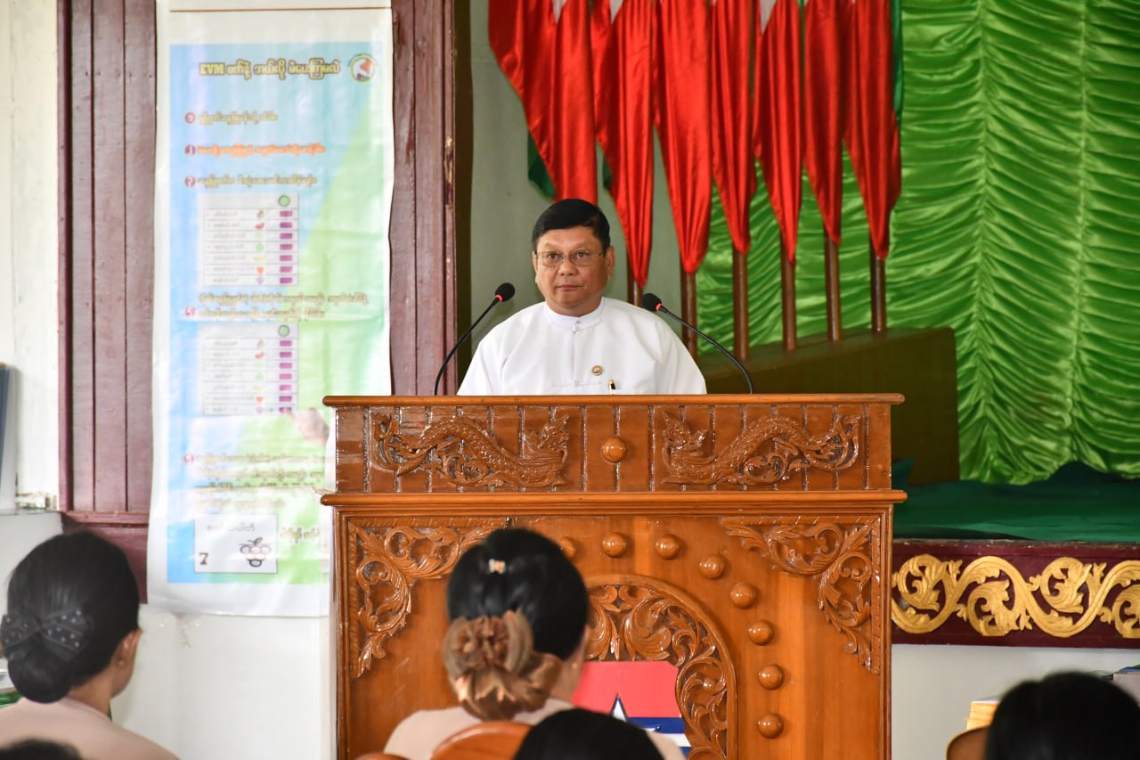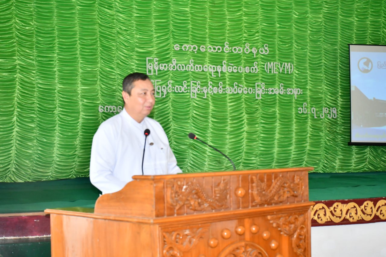 ထို့နောက် တိုင်းဒေသကြီး မြန်မာအီလက်ထရောနစ်မဲပေးစက် (MEVM) ဆိုင်ရာကြီးကြပ်ရေး အဖွဲ့ဥက္ကဋ္ဌ၊ တိုင်းဒေသကြီးလမ်းပန်းဆက်သွယ်ရေးဝန်ကြီး ဦးအောင်ဇော်လှိုင်က လွတ်လပ်ပြီး တရားမျှတသည့် ပါတီစုံဒီမိုကရေစီ ရွေးကောက်ပွဲ အောင်မြင်စွာကျင်းပနိုင်ရေး၊ နည်းလမ်းကျန မှန်ကန်သည့် အထွေထွေရွေးကောက်ပွဲပုံစံ ဖြစ်စေရေးနှင့် ရွေးကောက်ပွဲလုပ်ငန်းများ အောင်မြင်စွာဆောင်ရွက်နိုင်ရေးအတွက် ပူးပေါင်းပါဝင်ဆောင်ရွက်ကြရန် ပြောကြားပြီး ပြည်ထောင်စုရွေးကောက်ပွဲကော်မရှင်ရုံးမှ ဒုတိယညွှန်ကြားရေးမှူး ချုပ်ဦးညီညီလွင်က MEVM စက်အသုံးပြုရခြင်းနှင့် စပ်လျဉ်း၍ Power Point ဖြင့် ရှင်းလင်းပြောကြားသည်။