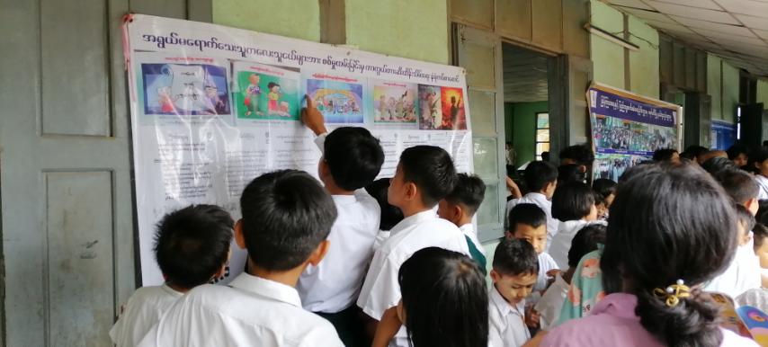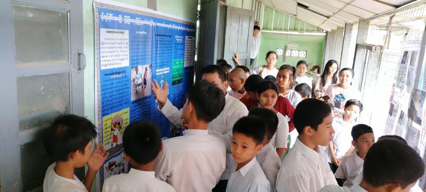 ယင်းနောက် တက်ရောက်လာကြသော ကျောင်းသား၊ ကျောင်းသူများက ပြန် ကြားရေးနှင့်ပြည်သူ့ဆက်ဆံရေးဦးစီးဌာနမှပြသထားသော အာဇာနည်နေ့အထိမ်းအမှတ် နံရံကပ်စာစောင်၊ မူးယစ်ဆေးဝါးအန္တရာယ်အကြောင်းသိကောင်းစရာများနှင့် ကလေးအလုပ်သမားပပျောက်ရေးအသိပညာပေး နံရံကပ် စာစောင်များကိုပြသခြင်း၊ ကျောင်းသား၊ ကျောင်းသူများ စာပေချစ်မြတ်နိုးစိတ်ဖြစ်ပေါ်လာစေရန်အတွက် သုတ/ရသ စာအုပ်၊ စာစောင်များ ပြသဆောင်ရွက်ထားရာ ဆရာ၊ ဆရာမများ နှင့် ကျောင်းသား/ကျောင်းသူများက စိတ်ပါဝင်စားစွာ လေ့လာကြည့်ရှုခဲ့ကြကြောင်း သိရသည်။