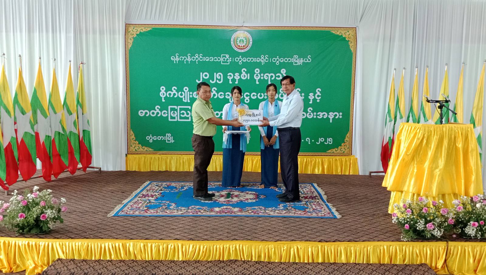 ရန်ကုန်တိုင်းဒေသကြီး၊ တွံတေးခရိုင်တွင် စီမံကိန်းနှင့်ဘဏ္ဍာရေးဝန်ကြီးဌာန၊ မြန်မာ့လယ်ယာဖွံဖြိုးရေးဘဏ်၊ တွံတေးခရိုင်၊ တွံတေးမြို့နယ်တွင် ကျင်းပပြုလုပ်သည့် ၂၀၂၅ ခုနှစ် မိုးရာသီစိုက်ပျိုးစရိတ်ချေးငွေပေးအပ်ခြင်းနှင့် ဓာတ်မြေသြဇာထောက်ပံ့ပေးအပ်ပွဲအခမ်းအနားကို ဇူလိုင် ၁၅ ရက် နံနက် ၁၁ နာရီအချိန်က တွံတေးမြို့ အားကစားရုံ၌ ကျင်းပပြုလုပ်ခဲ့သည်။