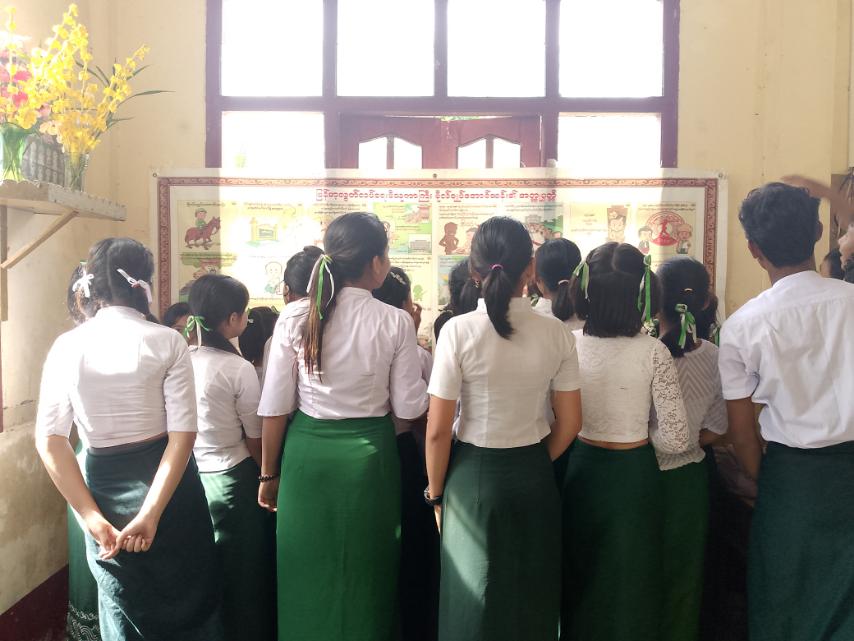ဆက်လက်၍ အာဇာနည်ကိုးဦး၏ အတ္ထုပ္ပတ္တိများ၊ အာဇာနည်နေ့နှင့်ပတ်သက်သည့် ဆောင်းပါး၊ကဗျာ ကာတွန်းများပါဝင်သည့် နံရံကပ်စာစောင်များအားပြသရာ ကျောင်းသား၊ ကျောင်းသူများက စိတ်ပါဝင်စားစွာလေ့လာကြည့်ရှုခဲ့ကြသည်။