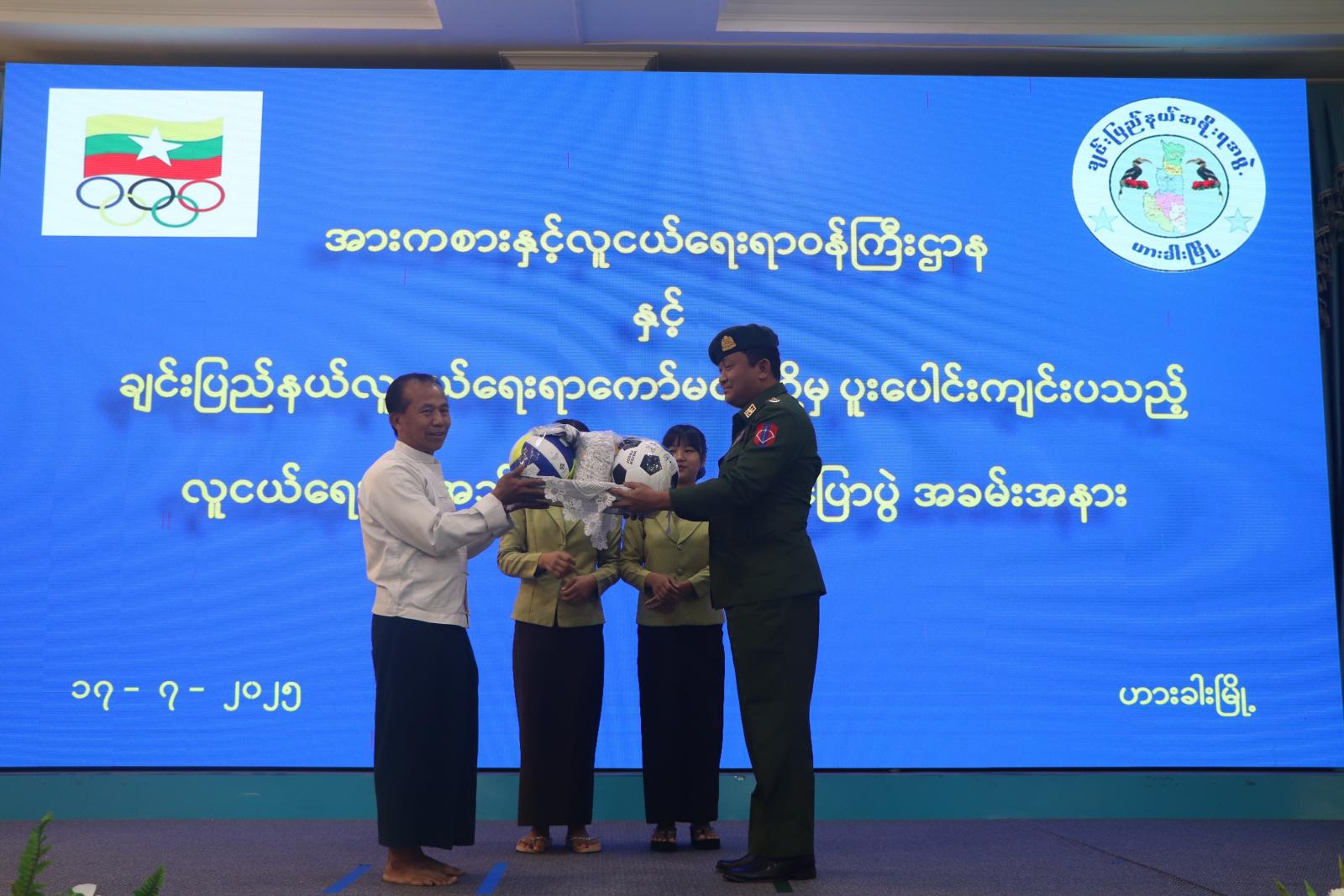 ထို့နောက် ပြည်နယ်ကျန်းမားရေးဦးစီးဌာနမှ ဦးစီးအရာရှိ−သူနာပြု ဒေါ်ခေါမွေငူးရီက “လူငယ်နှင့် မူးယစ်ဆေးအန္တရာယ်၊ ဆေးရွက်ကြီးနှင့် E-cigarette အကြောင်း ” ခေါင်းစဉ်ဖြင့် အသိပညာပေး ဟောပြောပြီး ပြည်နယ်ဝန်ကြီးချုပ်က ဦးစီးအရာရှိ−သူနာပြု ဒေါ်ခေါမွေငူးရီအား ဂုဏ်ပြုလက်ဆောင်ကိုလည်းကောင်း၊ လုံခြုံရေးနှင့်နယ်စပ်ရေးရာဝန်ကြီး ဗိုလ်မှူးကြီး သိန်းထွန်းအောင်က ဟားခါးမြို့၊ အမှတ်(၂)အခြေခံပညာအထက်တန်းကျောင်း ကျောင်းအုပ်ကြီးအား အားကစားအထောက်အကူ ပစ္စည်းများကိုလည်းကောင်း ပေးအပ်ချီးမြှင့်ကြပြီး ပြည်နယ်ဝန်ကြီးချုပ်က အခမ်းအနားတက်ရောက်လာကြသည့် ပြည်နယ်အဆင့်ဌာနဆိုင်ရာတာဝန်ရှိသူများနှင့် ကျောင်းသား၊ ကျောင်းသူများအား အားပေးစကားပြောကြားခဲ့ကြောင်း သိရသည်။