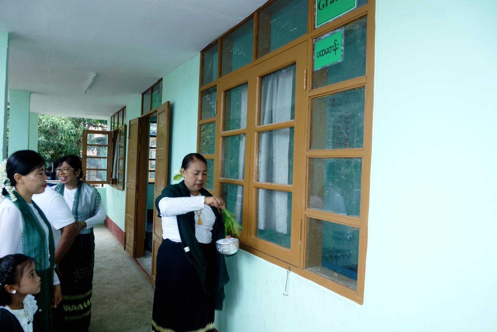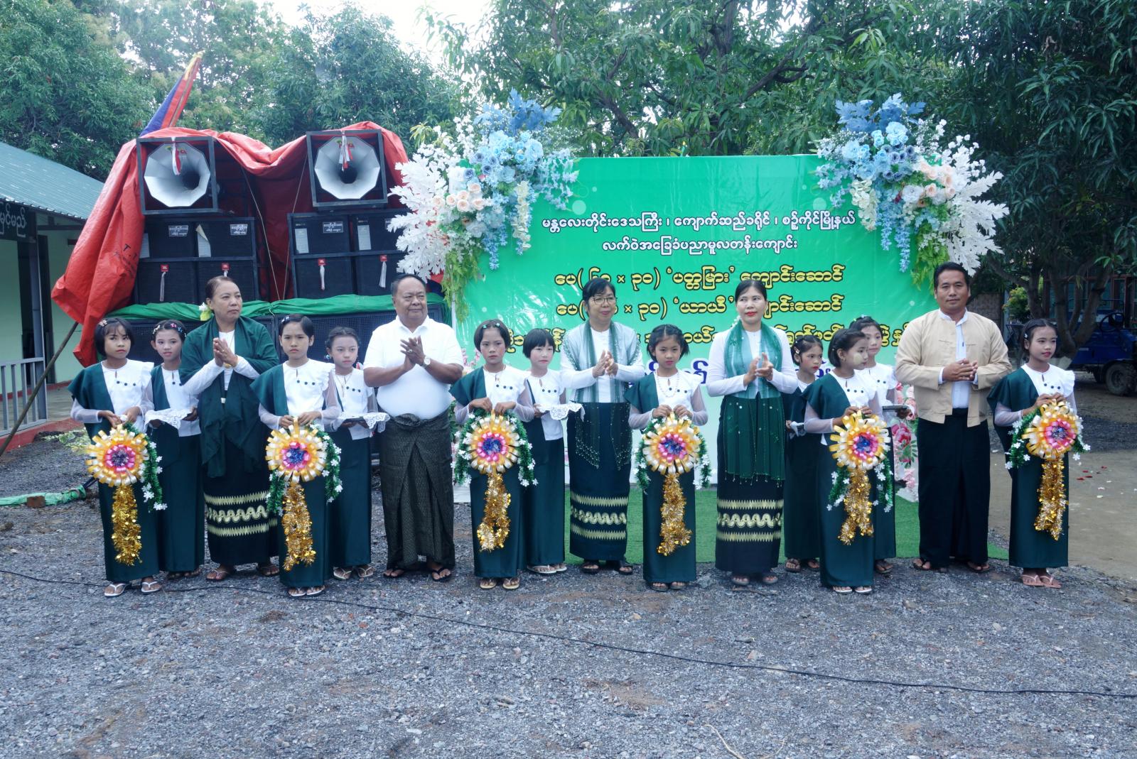 ၎င်းနောက် မြို့နယ်စီမံအုပ်ချုပ်ရေးအဖွဲ့၊ အဖွဲ့ဝင် (၂) ဦးရွှေခိုင်က အမှာစကားပြောကြားခဲ့သည်။ ဆက်လက်၍ ခရိုင်ပညာရေးမှူး ဒေါ်ဥမ္မာကြည်က ပညာရေးဆိုင်ရာ လုပ်ငန်းအကျဉ်းများကို လည်းကောင်း၊ မြို့နယ်ပညာရေးမှူး ဒေါ်မြင့်မြင့်ဦးက ကျောင်းဆောင်သစ် ဖွင့်လှစ်နိုင်ခဲ့ရခြင်းနှင့် ပတ်သက်၍ မြို့နယ်အတွက် ကျေးဇူးတင်ဂုဏ်ယူဝမ်းမြောက်စကားများကိုလည်းကောင်း၊ ကျေးရွာအုပ်ချုပ်ရေးမှူး ဦးကျော်အေးက ကျေးရွာအတွက် ကျေးဇူးတင်ဂုဏ်ယူဝမ်းမြောက်စကားများကိုလည်းကောင်း အသီးသီး ပြောကြားခဲ့ကြောင်းသိရသည်။