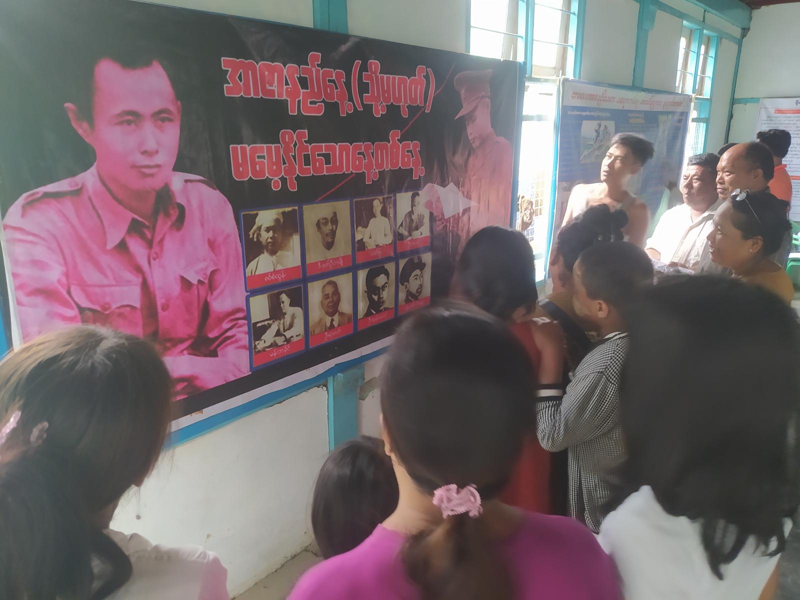 မန္တလေးတိုင်းဒေသကြီး၊ မဟာအောင်မြေမြို့နယ် ပြန်ကြားရေးနှင့်ပြည်သူ့ဆက်ဆံရေးဦးစီးဌာန လူထုအခြေပြု ဗဟိုဌာန (Community Centre) ၌ (၇၈) နှစ်မြောက် အာဇာနည်နေ့အထိမ်းအမှတ် အသိပညာပေးဟောပြောပွဲ၊ နံရံကပ် စာစောင်ပြပွဲနှင့်သုတရသစာအုပ်များ ပြပွဲကို ယနေ့မွန်းလွဲပိုင်းက ကျင်းပသည်။
