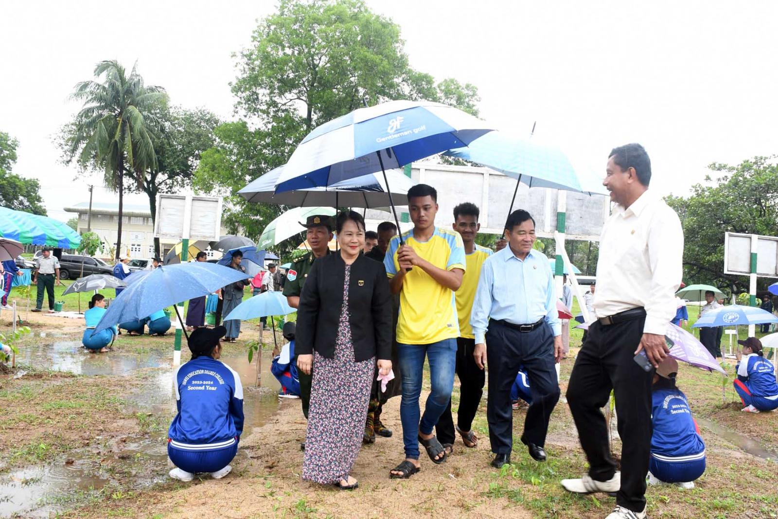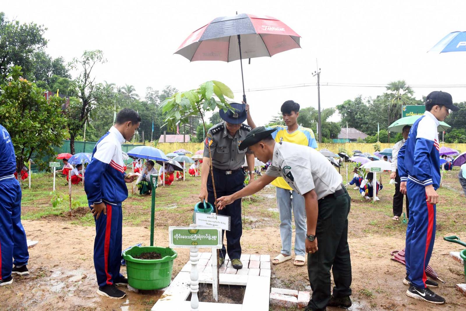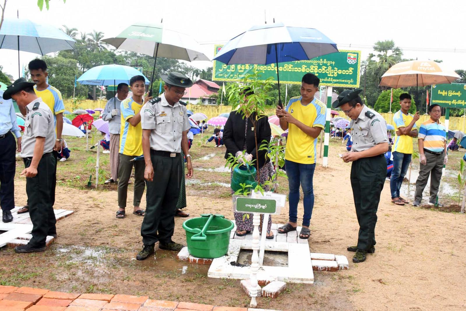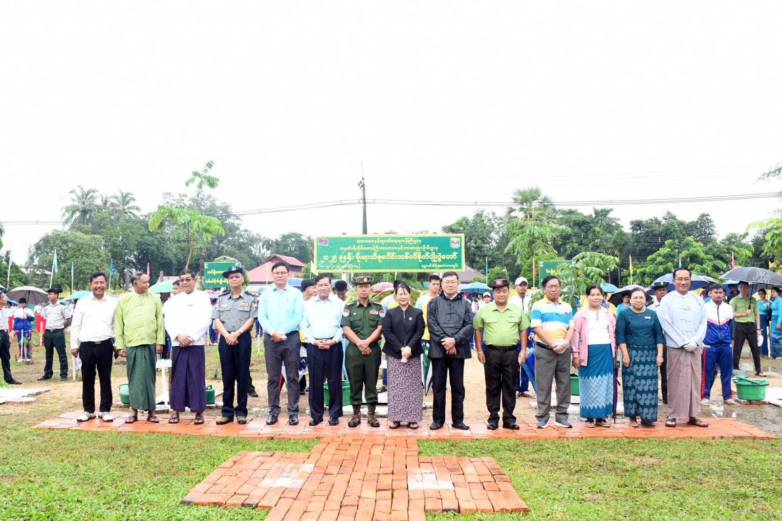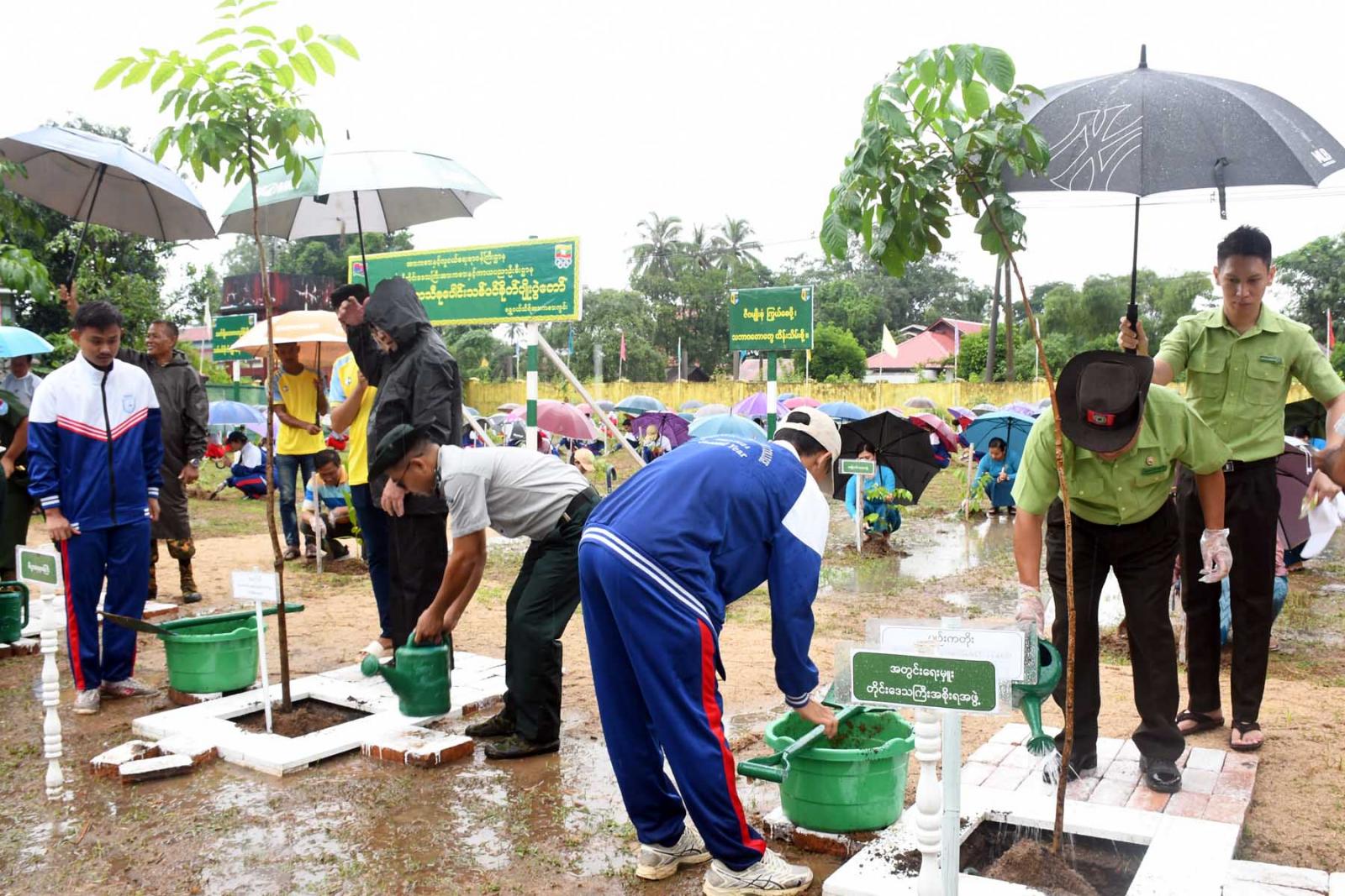 ရှေးဦးစွာ တိုင်းဒေသကြီးတရားလွှတ်တော်တရားသူကြီးချုပ်နှင့် တိုင်းဒေသကြီးဝန်ကြီးများက တက်ရောက်လာသူများအား သစ်ပင်ပျိုးပင်များပေးအပ်သည်။
