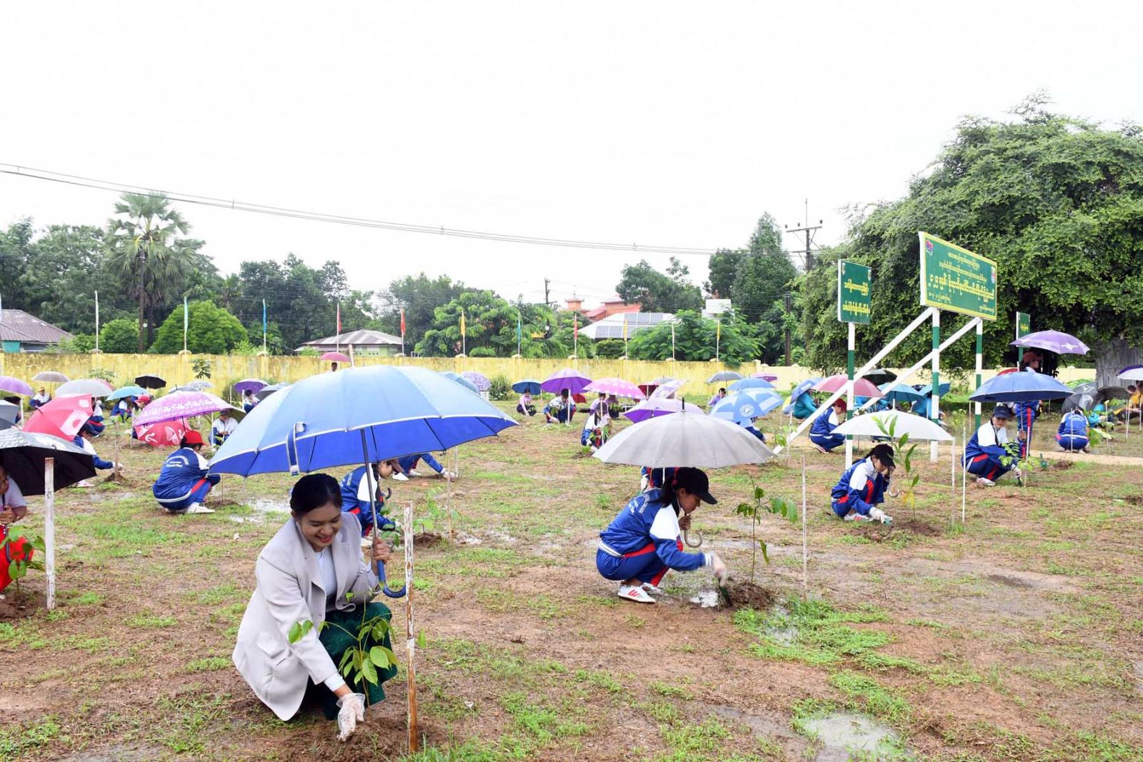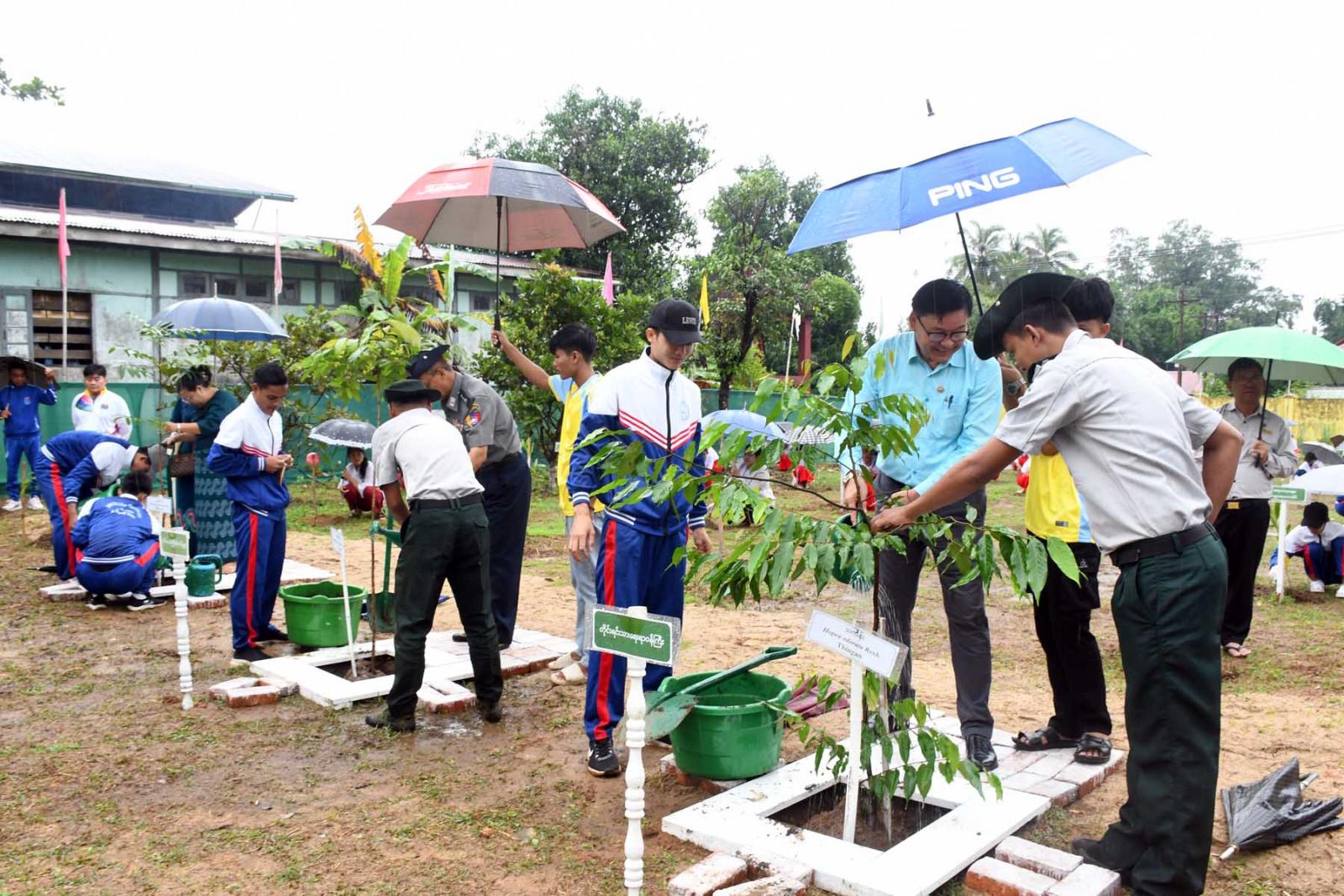 သက်ရှိလောကတည်မြဲဖို့၊ သစ်ပင်စိုက်ပျိုး ထိန်းသိမ်းစို့၊ ဇီဝမျိုးစုံကြွယ်ဝဖို့ သဘာဝတောတွေ ထိန်းသိမ်းစို့၊ သစ်တောသစ်ပင်ကျေးဇူးရှင် ထိန်းသိမ်းကြစို့ ထာဝစဉ်၊ရှင်အောင်စိုက် ပျိုး၊ ကြီးအောင်ပြုစု၊ မြဲအောင်ထိန်းသိမ်းစသည့်ဆောင်ပုဒ်နှင့်အညီ အားကစားကွင်းဝင်းအတွင်း၌ ခရေ၊ မဟော်ဂနီ၊ ပျဉ်းကတိုး၊ သင်္ကန်း၊ မန်ဂျန်ရှားစသည့် စုစုပေါင်းသစ်ပင် ပျိုးပင်(၂၀၀)ပင်အား စိုက်ပျိုးပေးကြသည်။